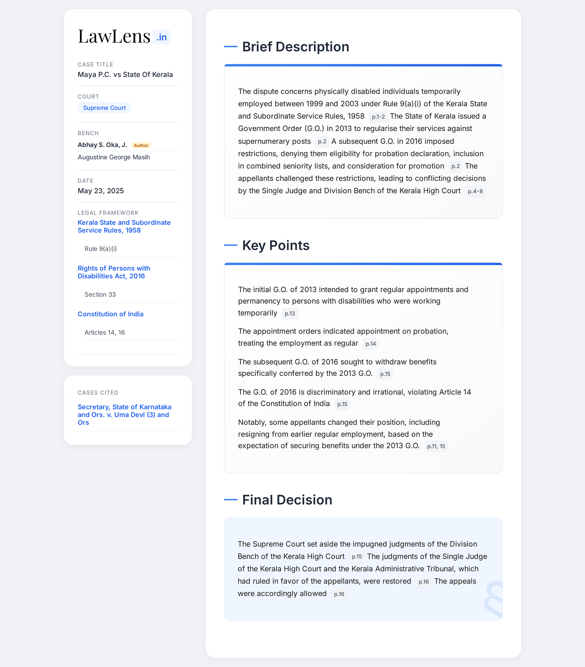 Maya P.C. vs State Of Kerala 2025 INSC 773 - Service Law - Withdrawal Of GO - Persons With Disability