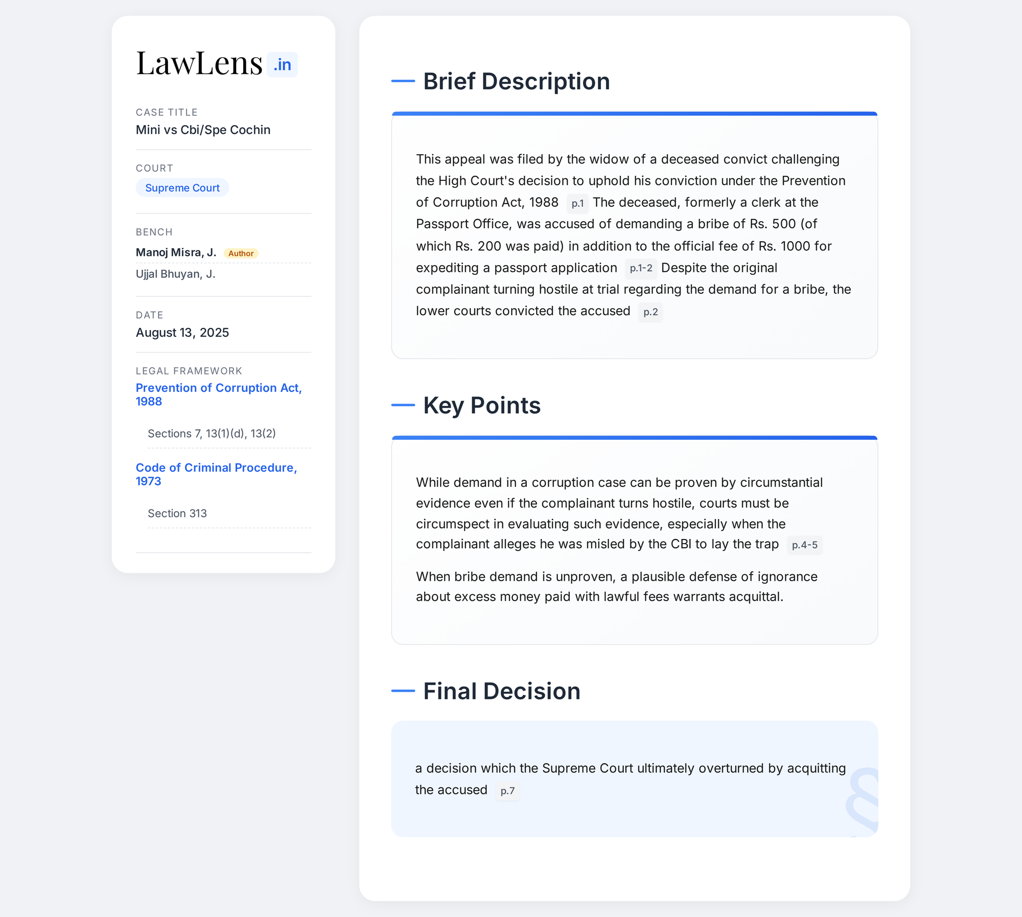 - Case Name: Mini v. CBI/SPE Cochin