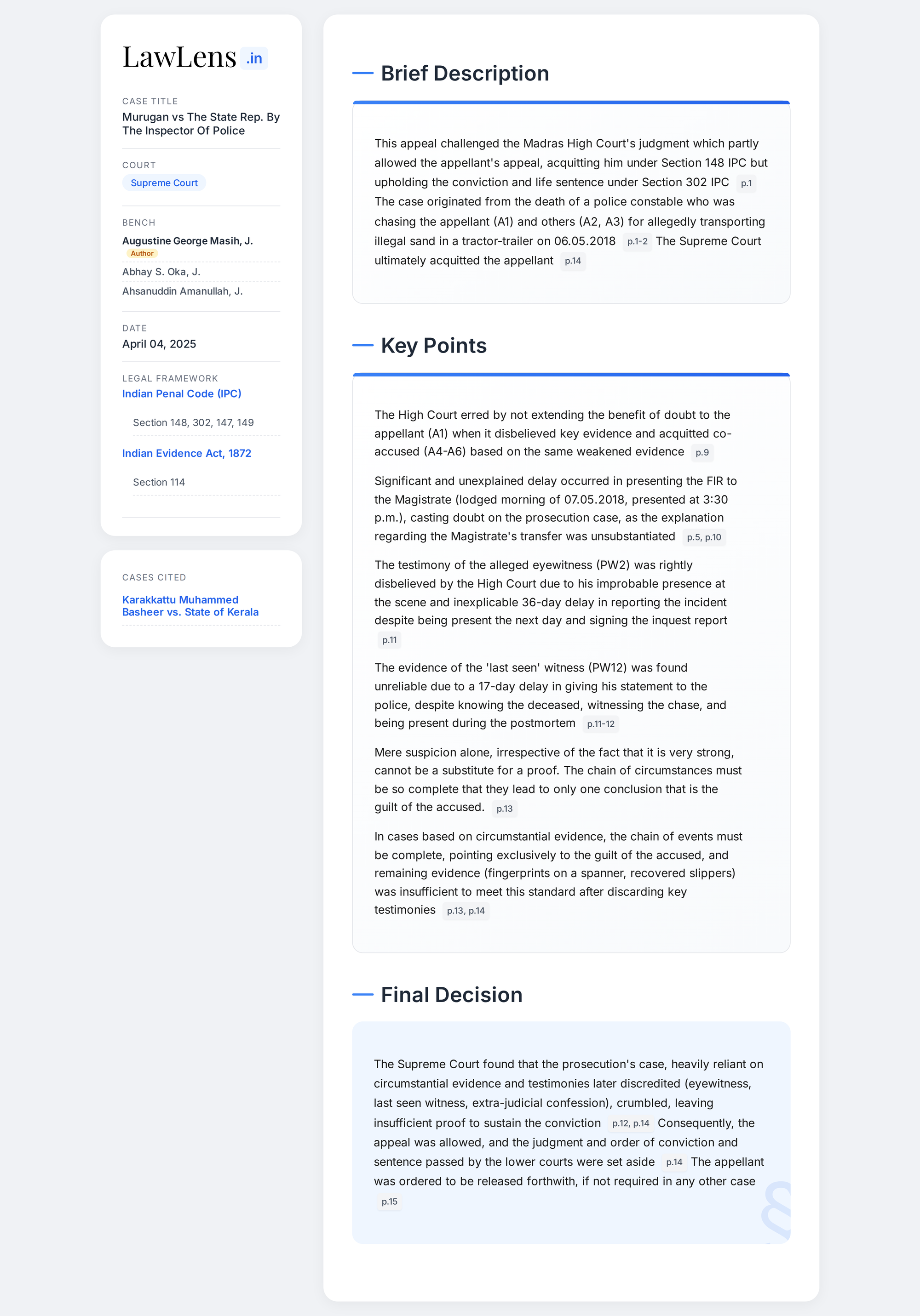 Murugan vs State 2025 INSC 446 - Circumstantial Evidence