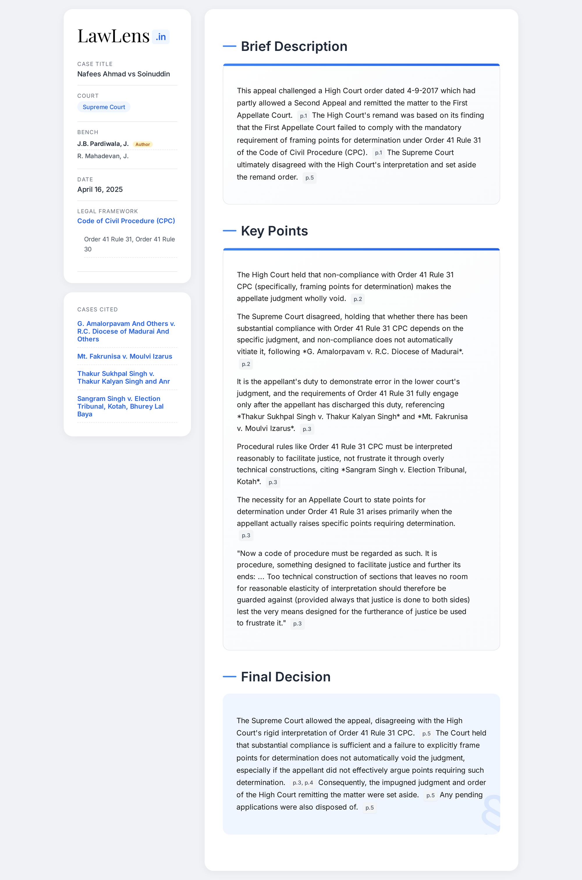Nafees Ahmad vs Soinuddin 2025 INSC 520 - Order XLII Rule 30,31 CPC