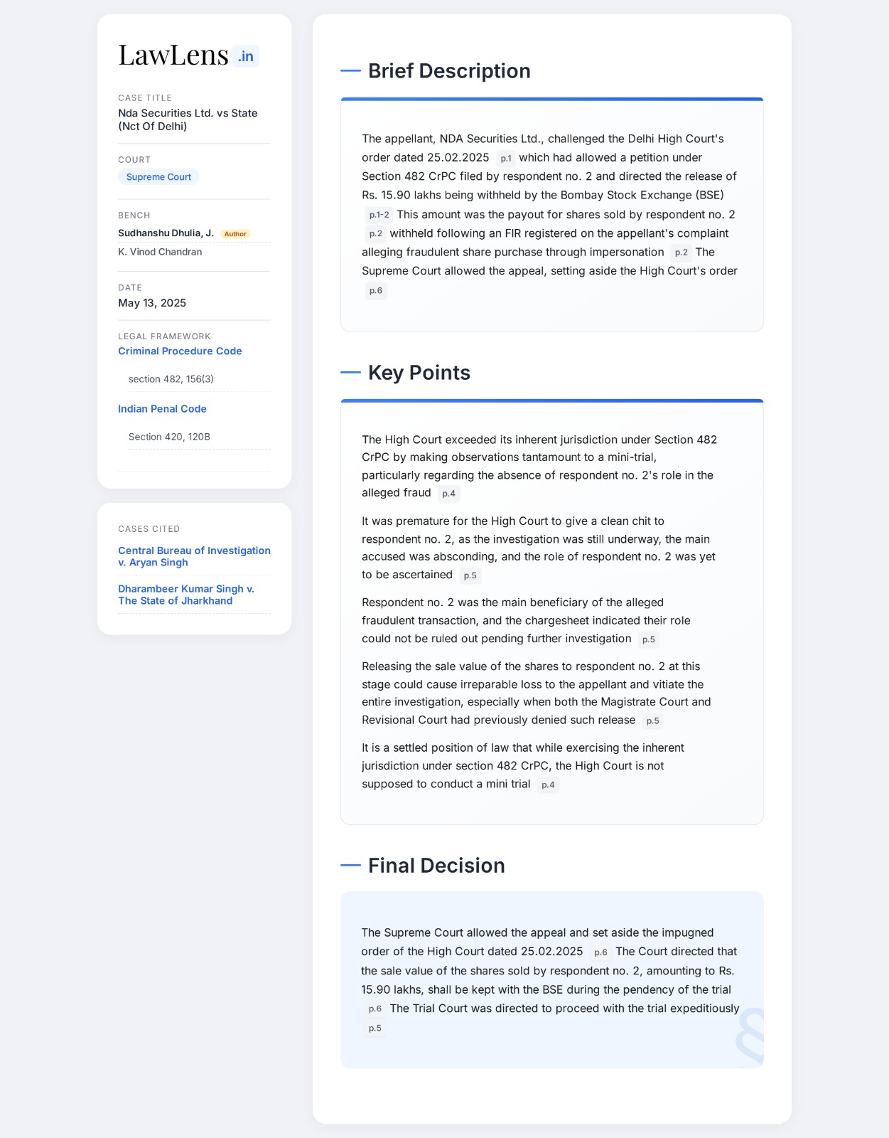 NDA Securities Ltd. vs State 2025 INSC 676 - S.482 CrPC - Quashing -