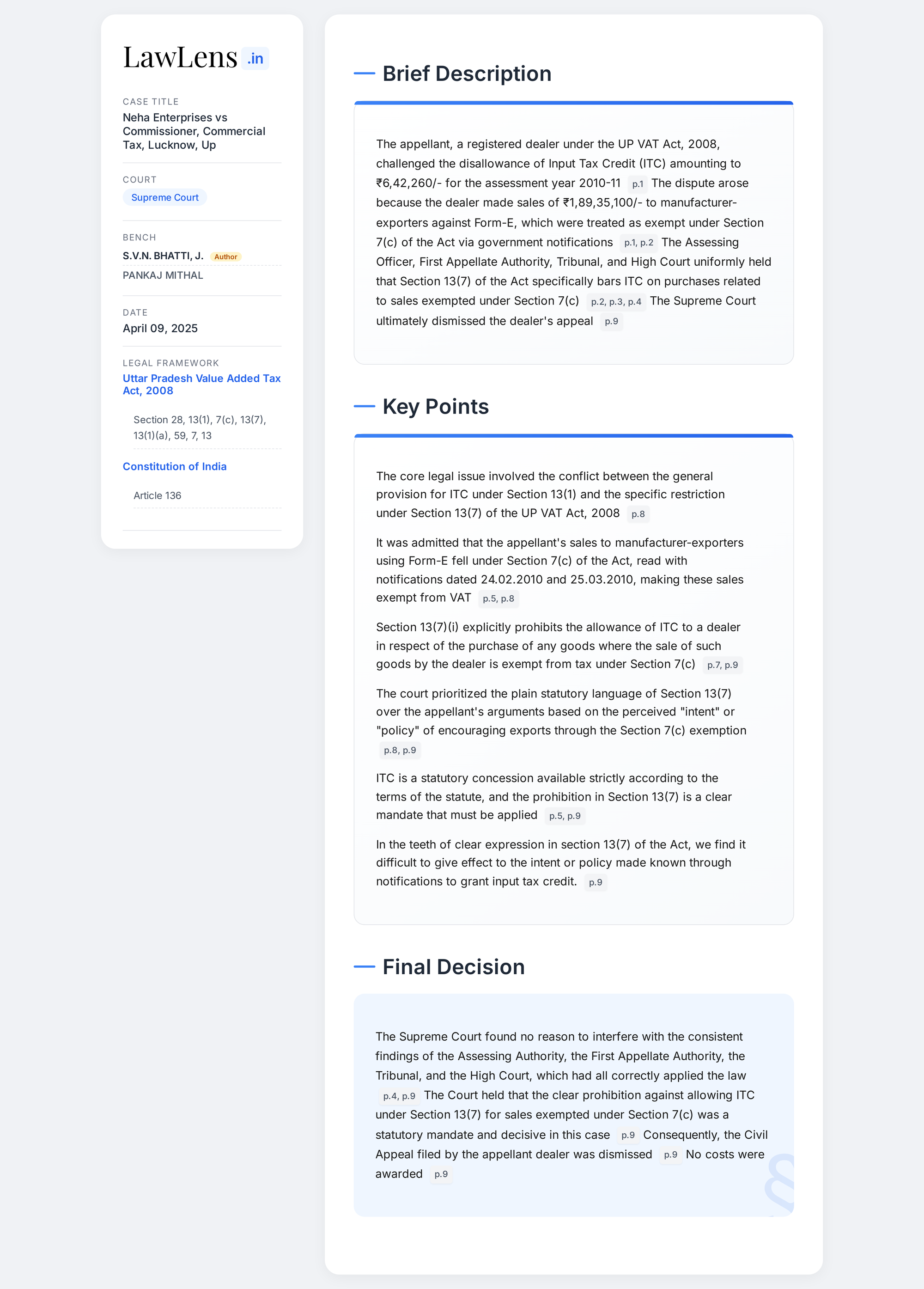 Neha Enterprises vs Commissioner, Commercial Tax 2025 INSC 476 - UP Vat - Taxation