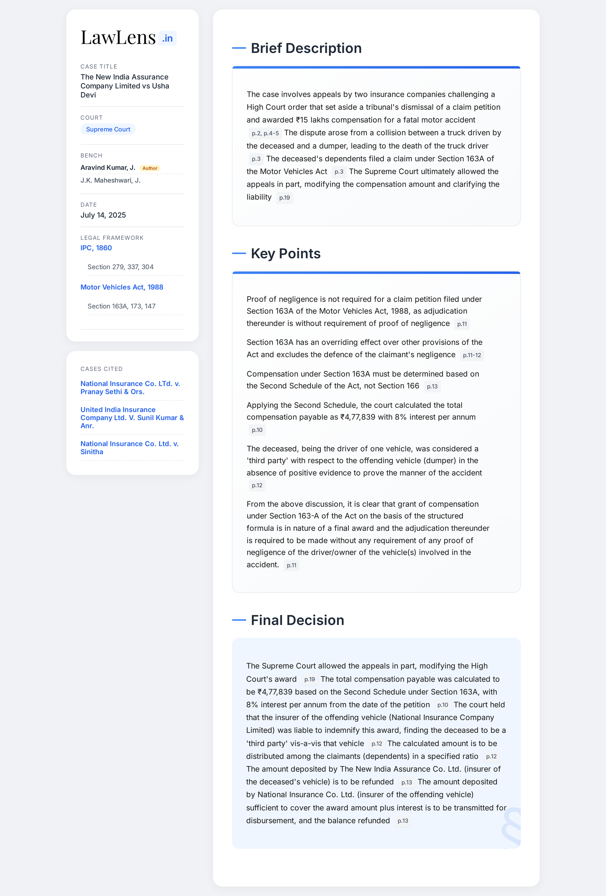 New India Assurance Vs Usha Devi 2025 INSC 836 - Motor Accident Compensation Claims- S.163A MV Act - Question Of Negligence