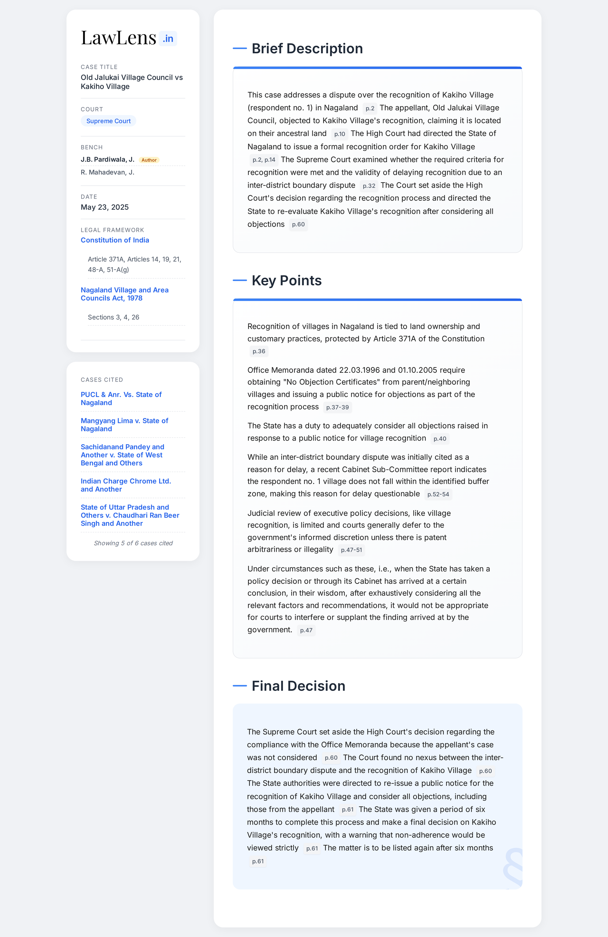 Old Jalukai Village Council vs Kakiho Village 2025 INSC 766 - Judicial Review Of Cabinet Decisions