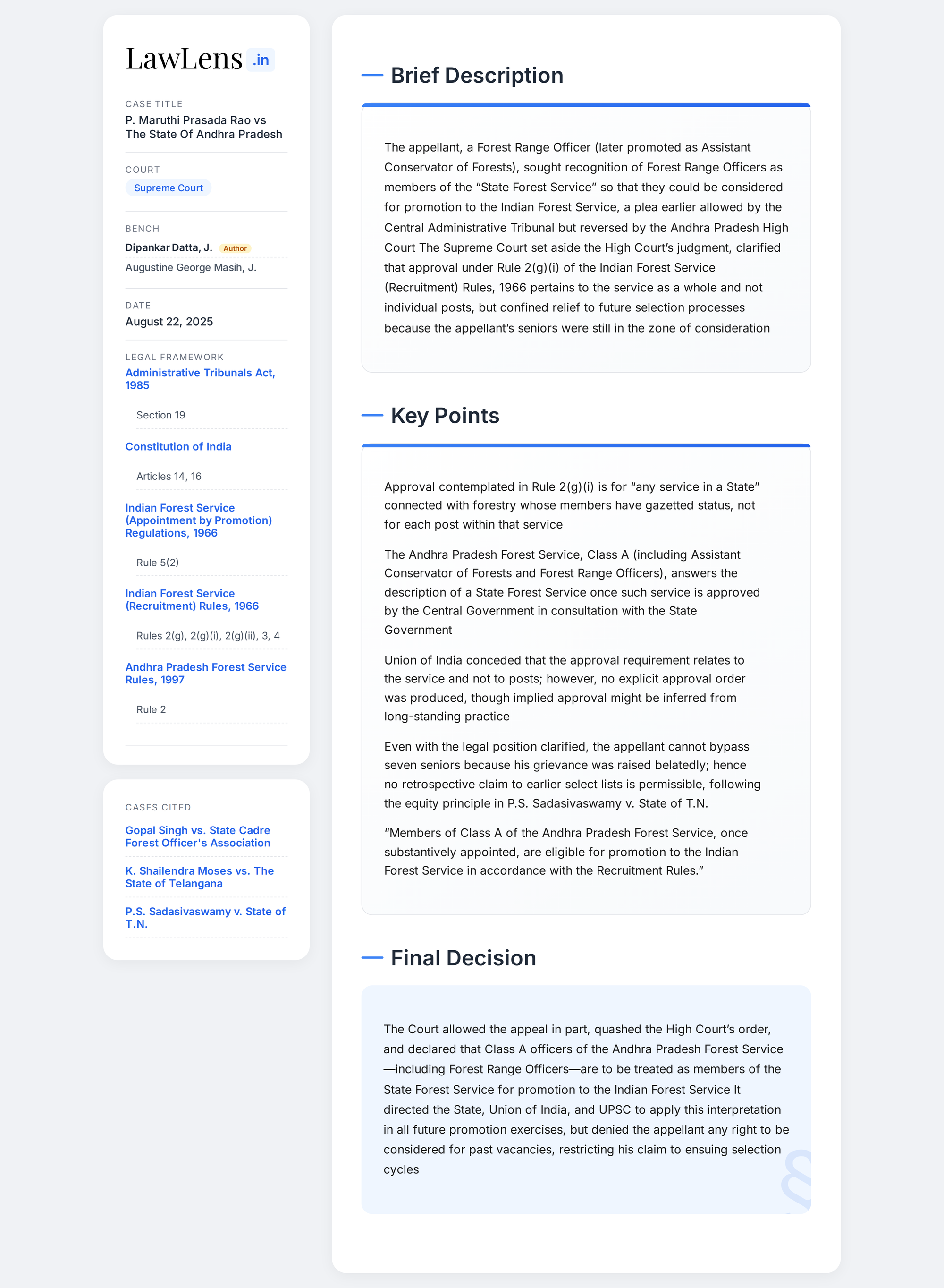 P. Maruthi Prasada Rao v. State of Andhra Pradesh 2025 INSC 1019 - Service - Indian Forest Service (Recruitment) Rules