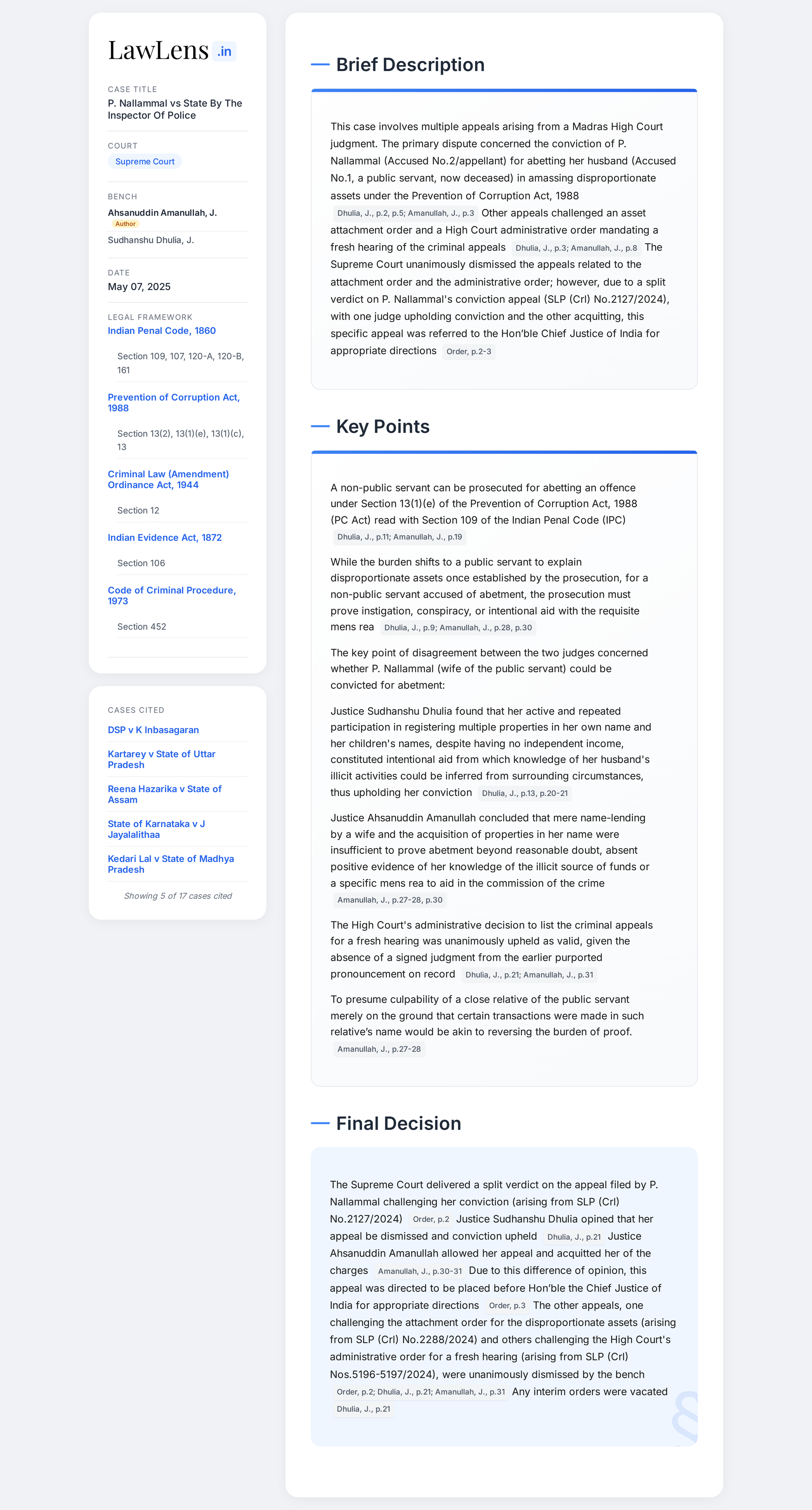 P. Nallammal vs State 2025 INSC 643 - Prevention of Corruption Act