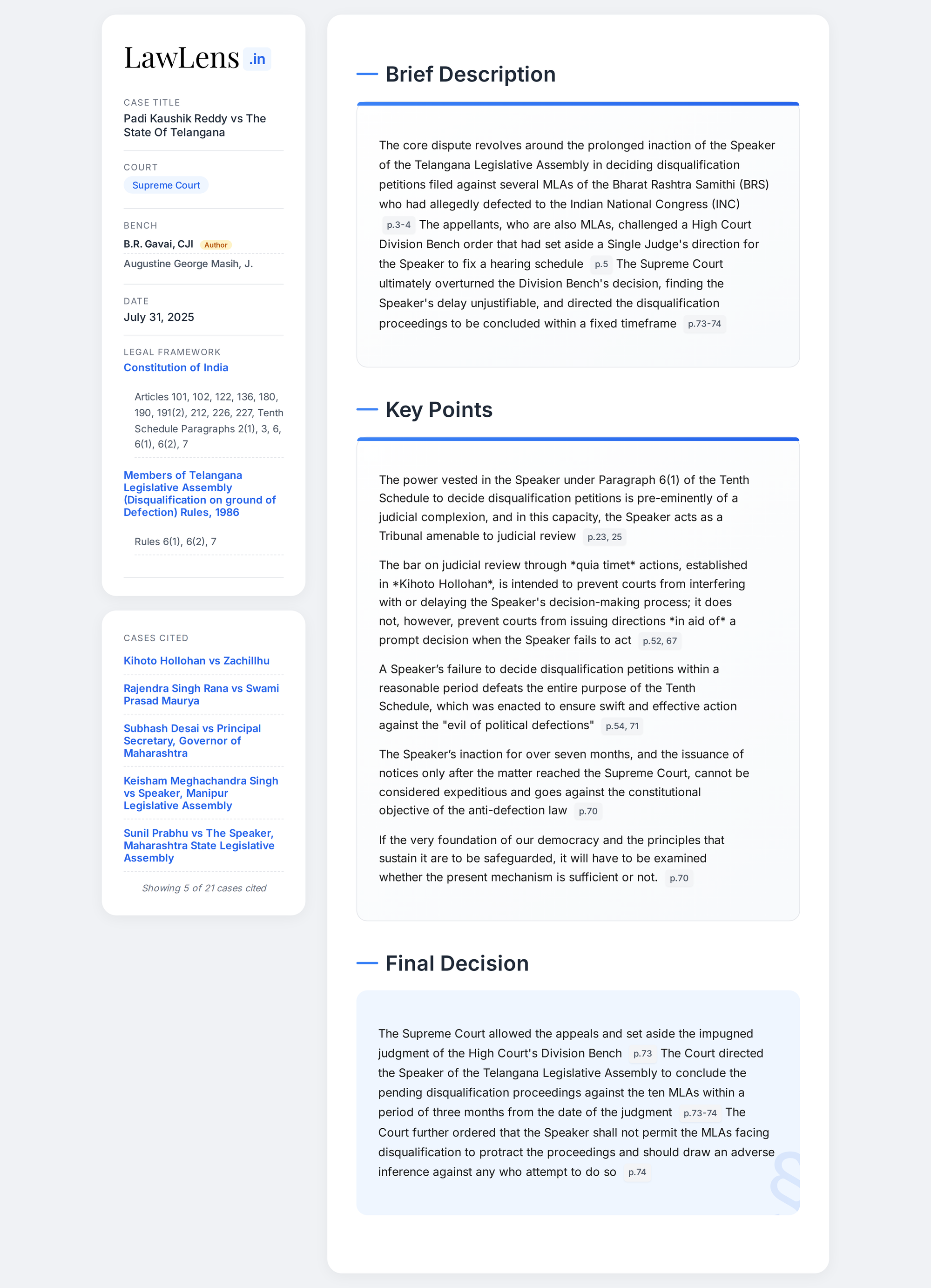 - Case Name: Padi Kaushik Reddy & Ors. v. State of Telangana & Ors.