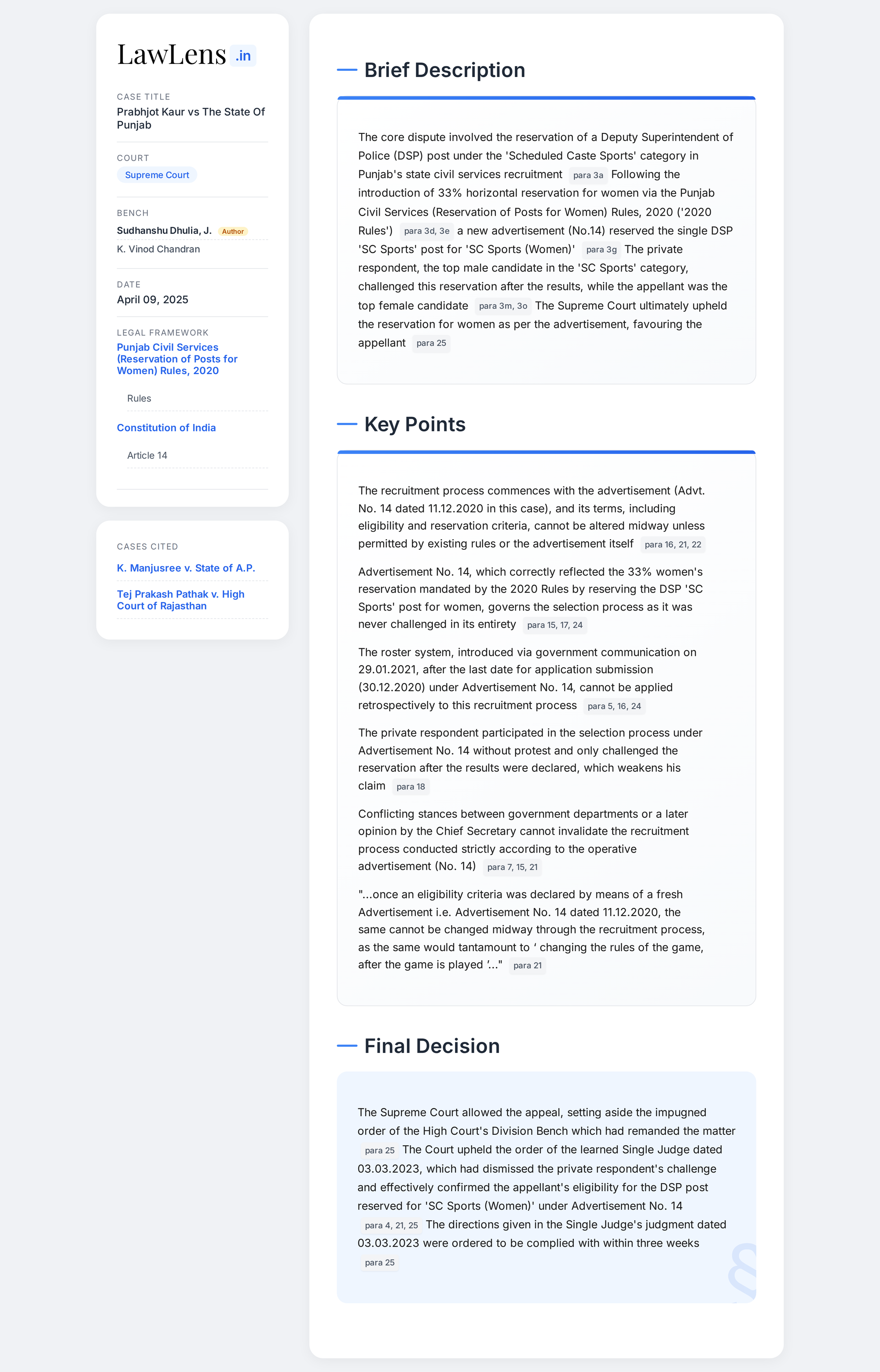 Prabhjot Kaur vs State Of Punjab 2025 INSC 479 - Public Appointments