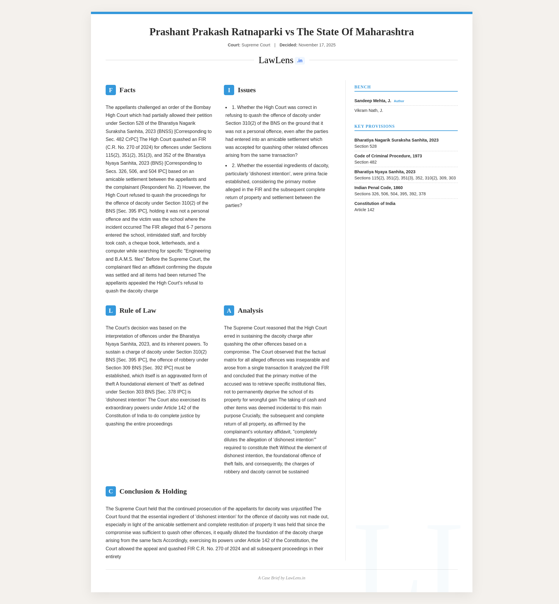 Prashant Prakash Ratnaparki v. State of Maharashtra 2025 INSC 1323 - IPC/BNS - Dacoity