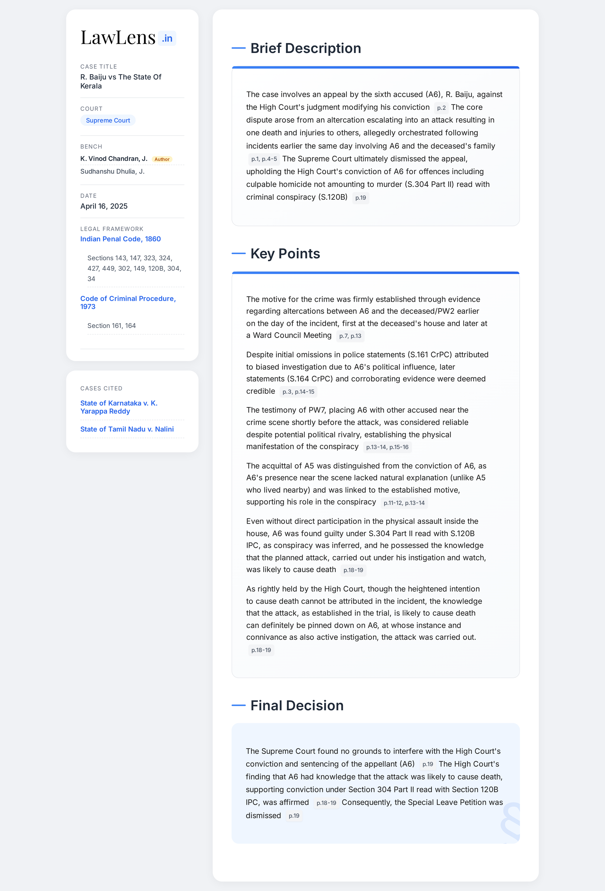 R. Baiju vs State of Kerala 2025 INSC 488 - S.120B IPC - Conspiracy
