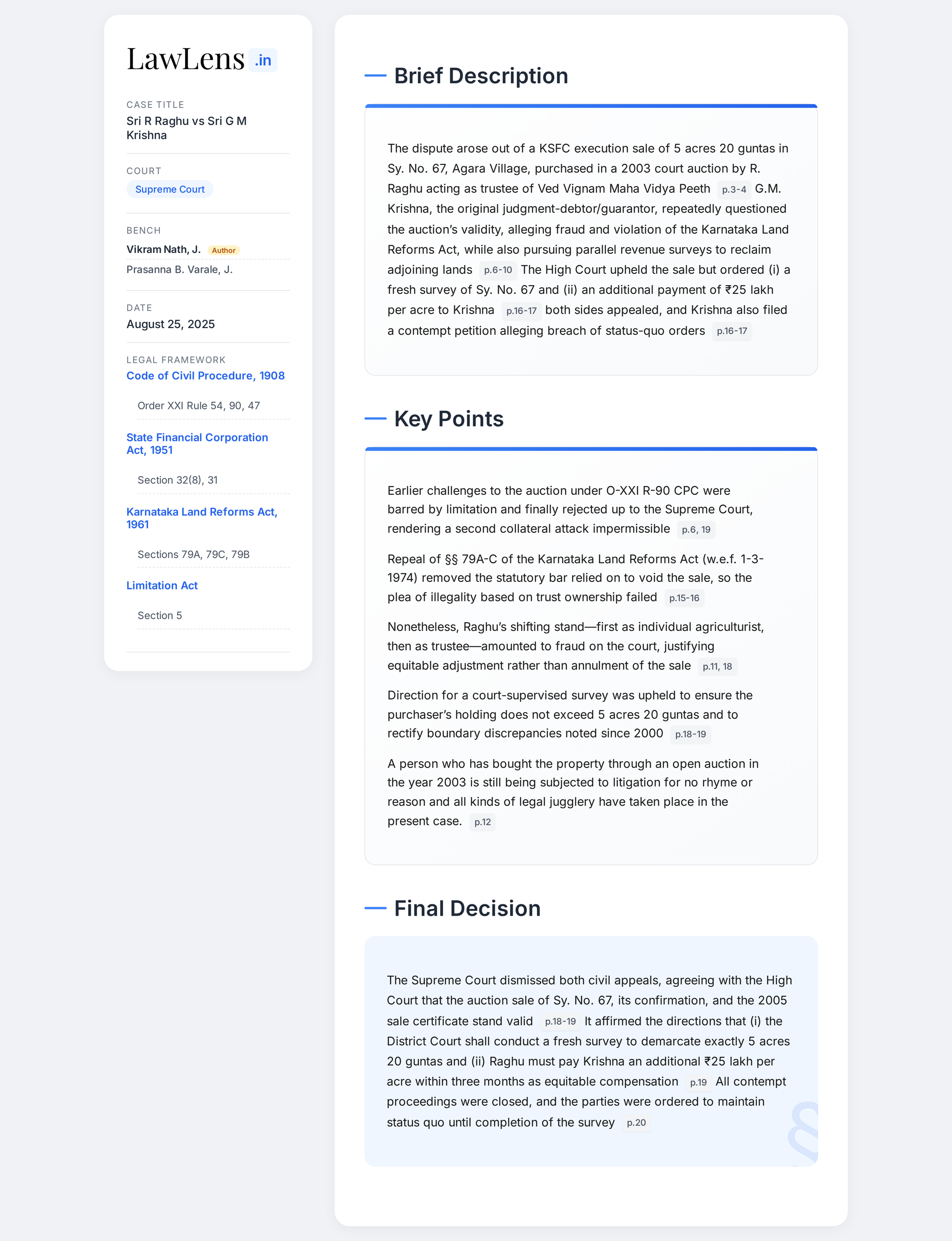 R Raghu vs G M Krishna 2025 INSC 1040 - Auction Sale
