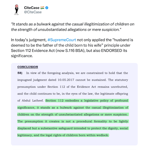 In today’s judgment, #SupremeCourt not only applied the "husband is deemed to be the father of the child born to his wife” principle under… https://t.co/PQMAZxt3F7 pic.twitter.com/fi7v2moiFy