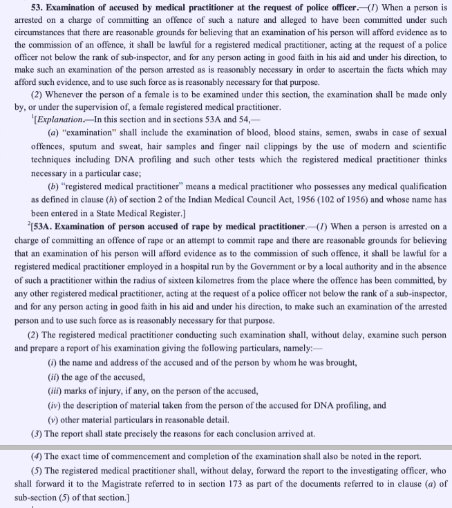 - Code of Criminal Procedure, 1973 - Sections 53 and 53A
