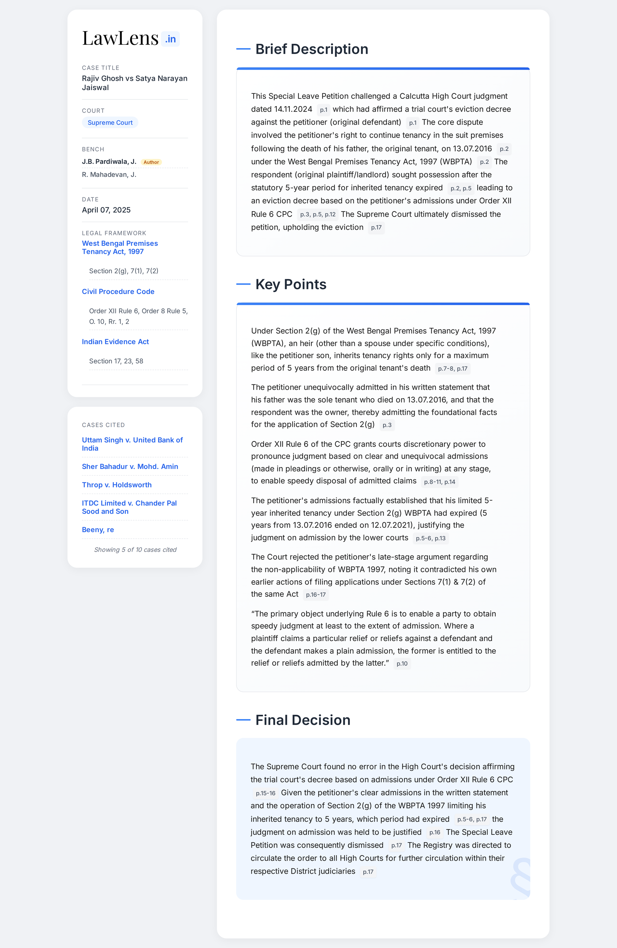 Rajiv Ghosh vs Satya Naryan Jaiswal 2025 INSC 467 - Order XII Rule 6 - Admissions