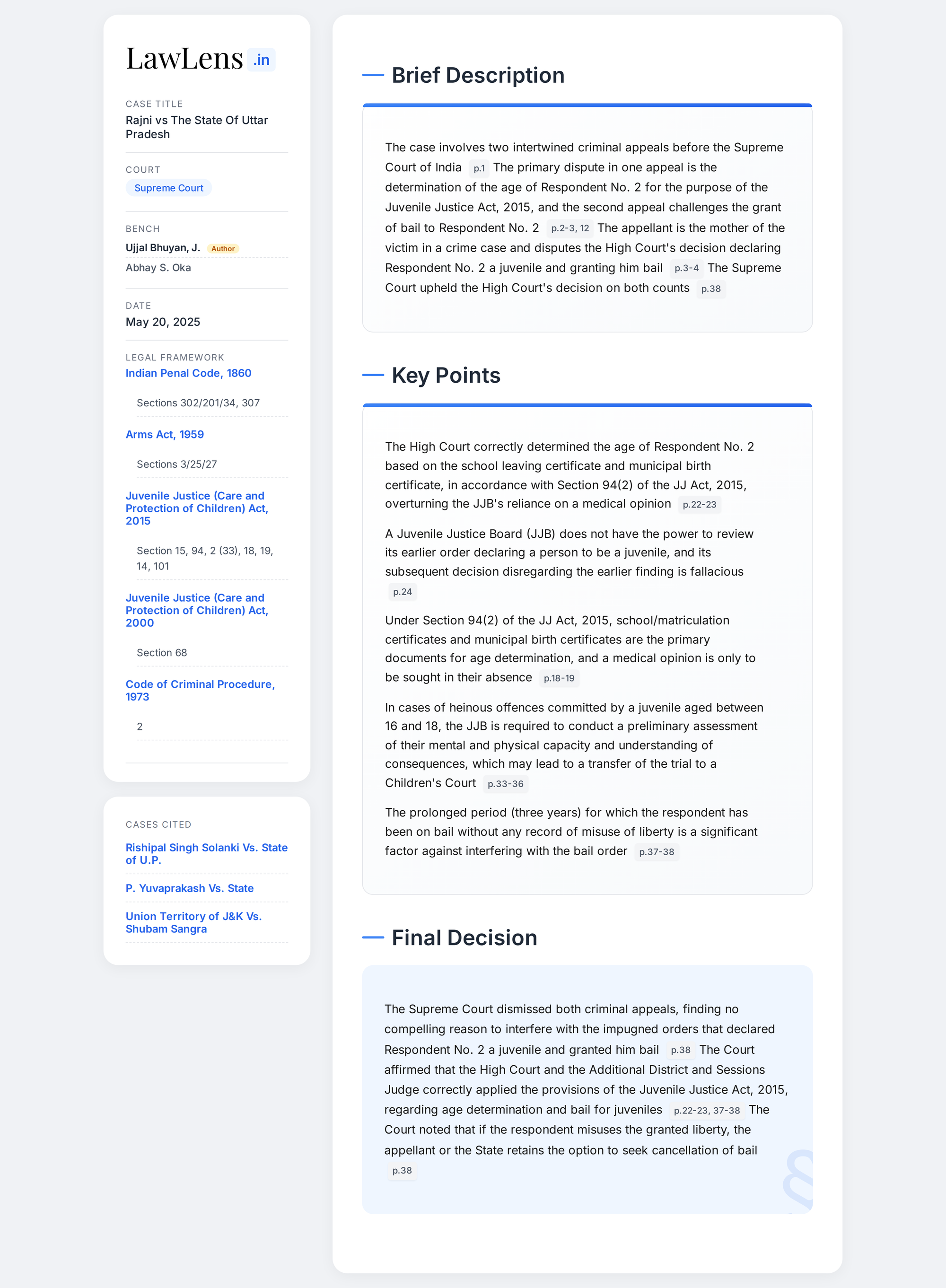 Rajni vs State Of Uttar Pradesh 2025 INSC 737 - S.94 Juvenile Justice Act - Review Power