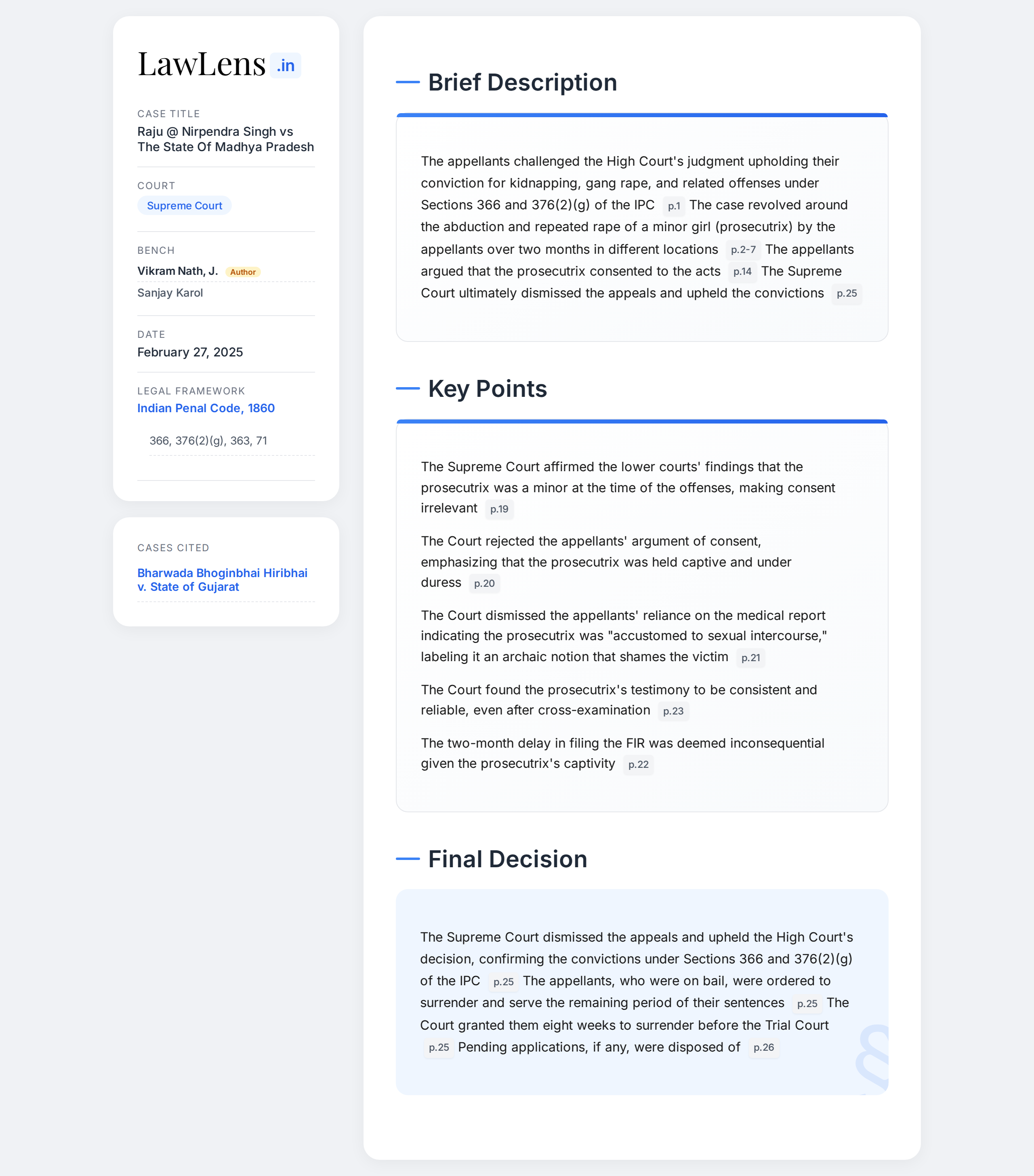 Raju @ Nirpendra Singh vs State Of Madhya Pradesh 2025 INSC 392 - Gang Rape Conviction Upheld