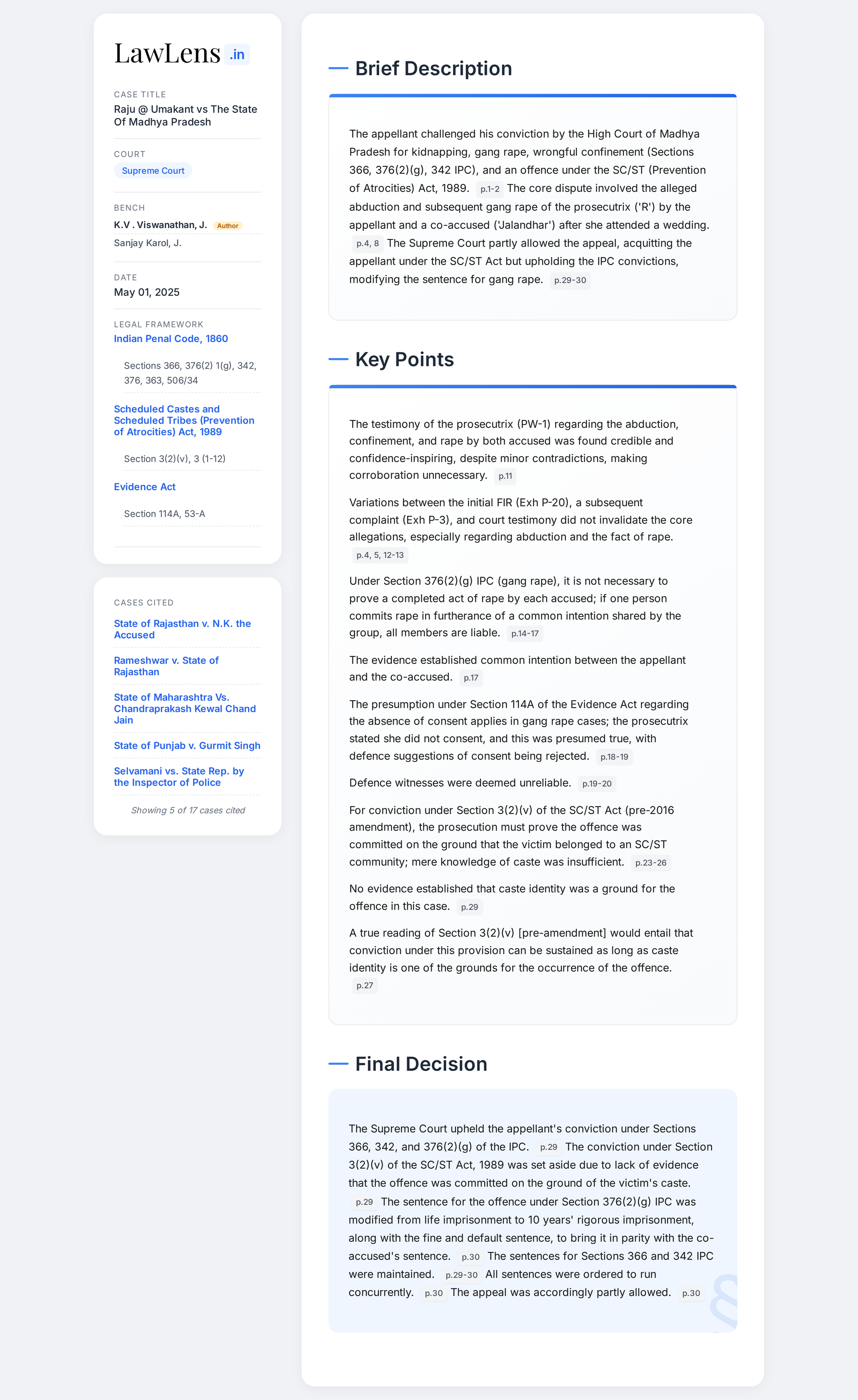 Raju @ Umakant Appellant(S) vs State Of Madhya Pradesh 2025 INSC 615 - S.376 IPC - Gang Rape - SC-ST Act - S.114A Evidence Act - Two Finger Test