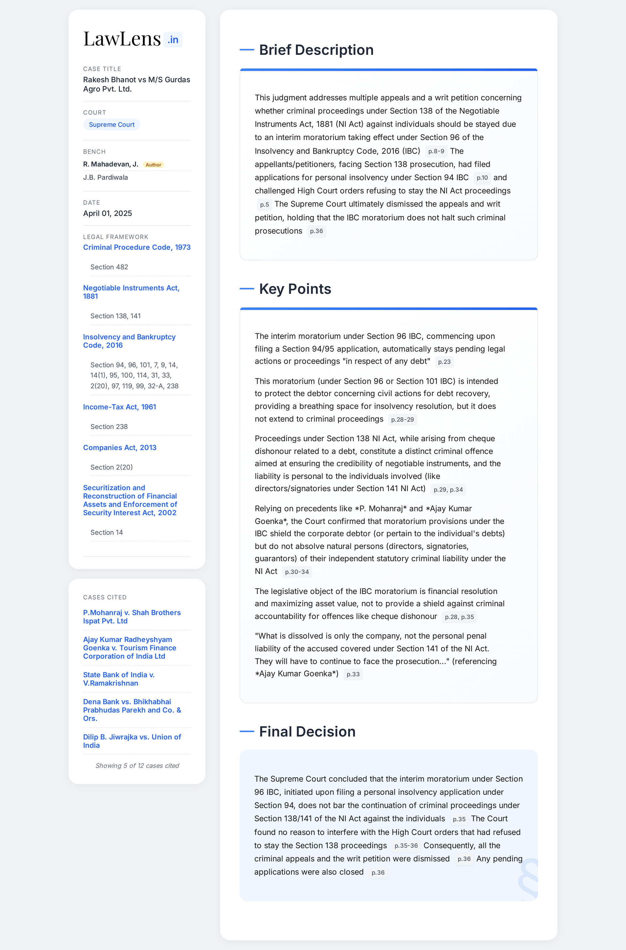 Rakesh Bhanot vs Gurdas Agro Pvt. Ltd. 2025 INSC 445 - S.96 IBC - Moratorium - S. 138 NI Act