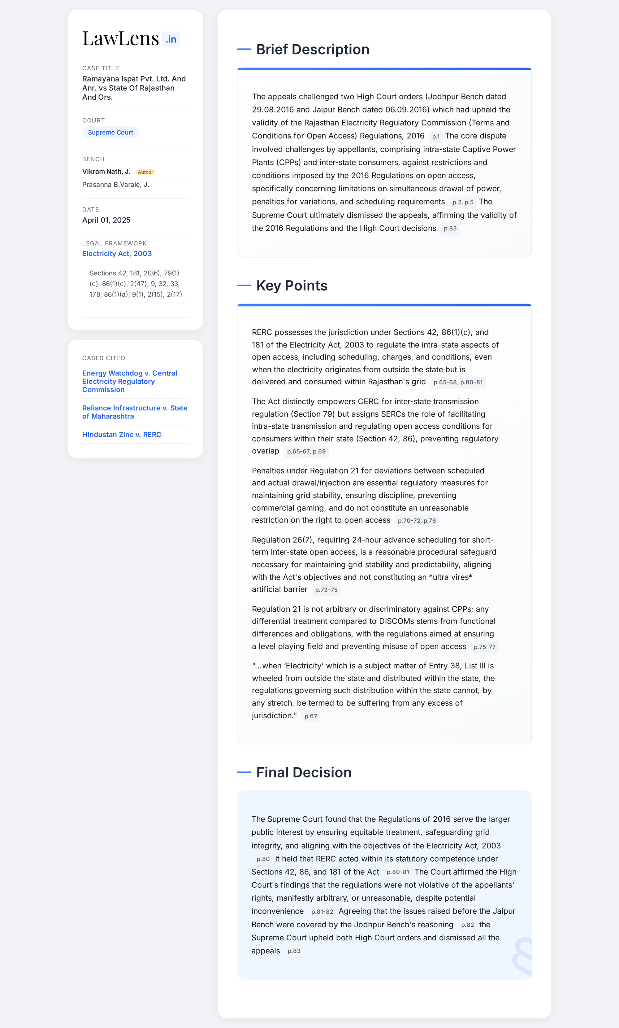 Ramayana ISPAT Pvt. Ltd. vs State Of Rajasthan 2025 INSC 424 - Electricity Act - Regulations Validity