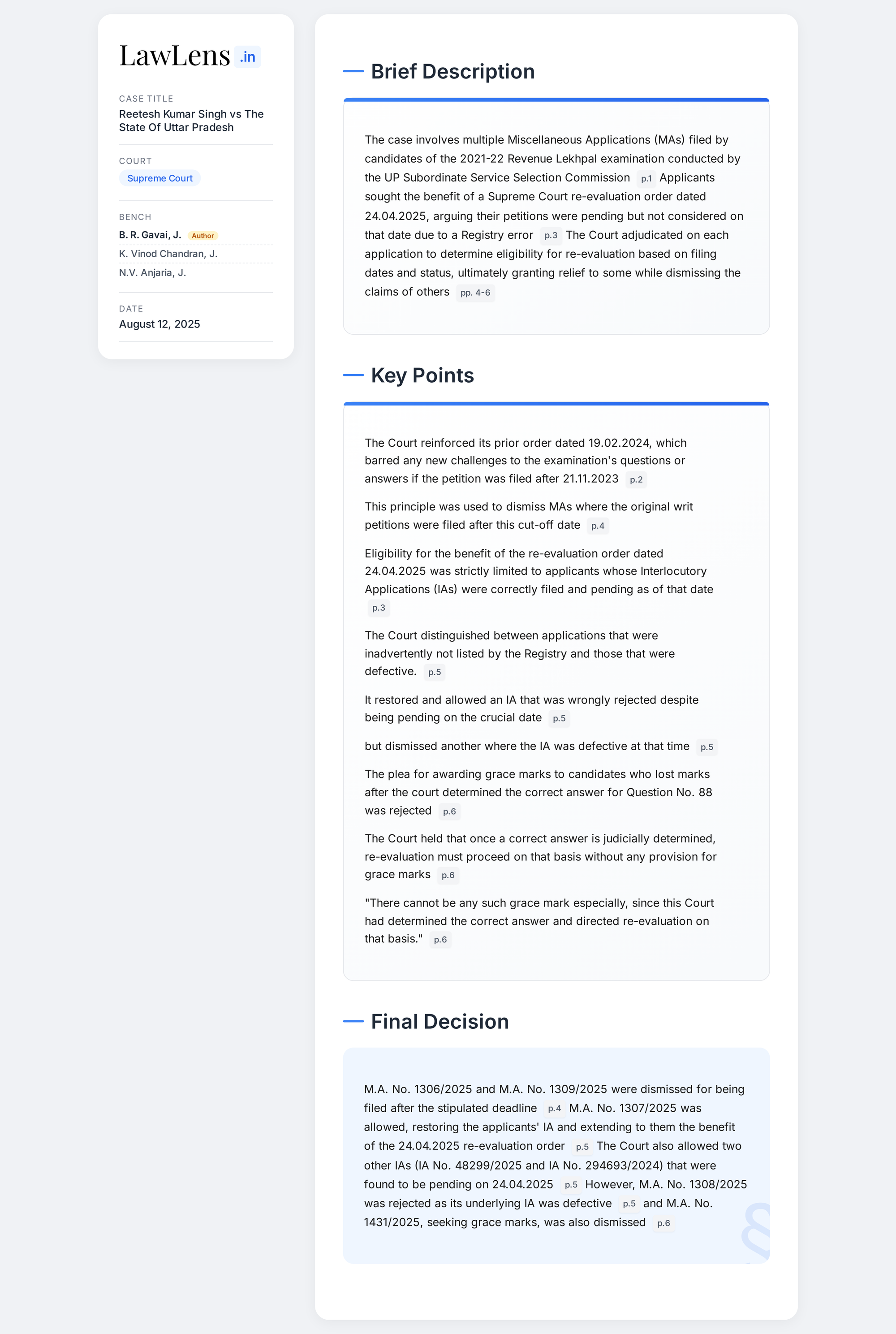 - Case Name: Reetesh Kumar Singh & Ors. vs The State of Uttar Pradesh & Ors.