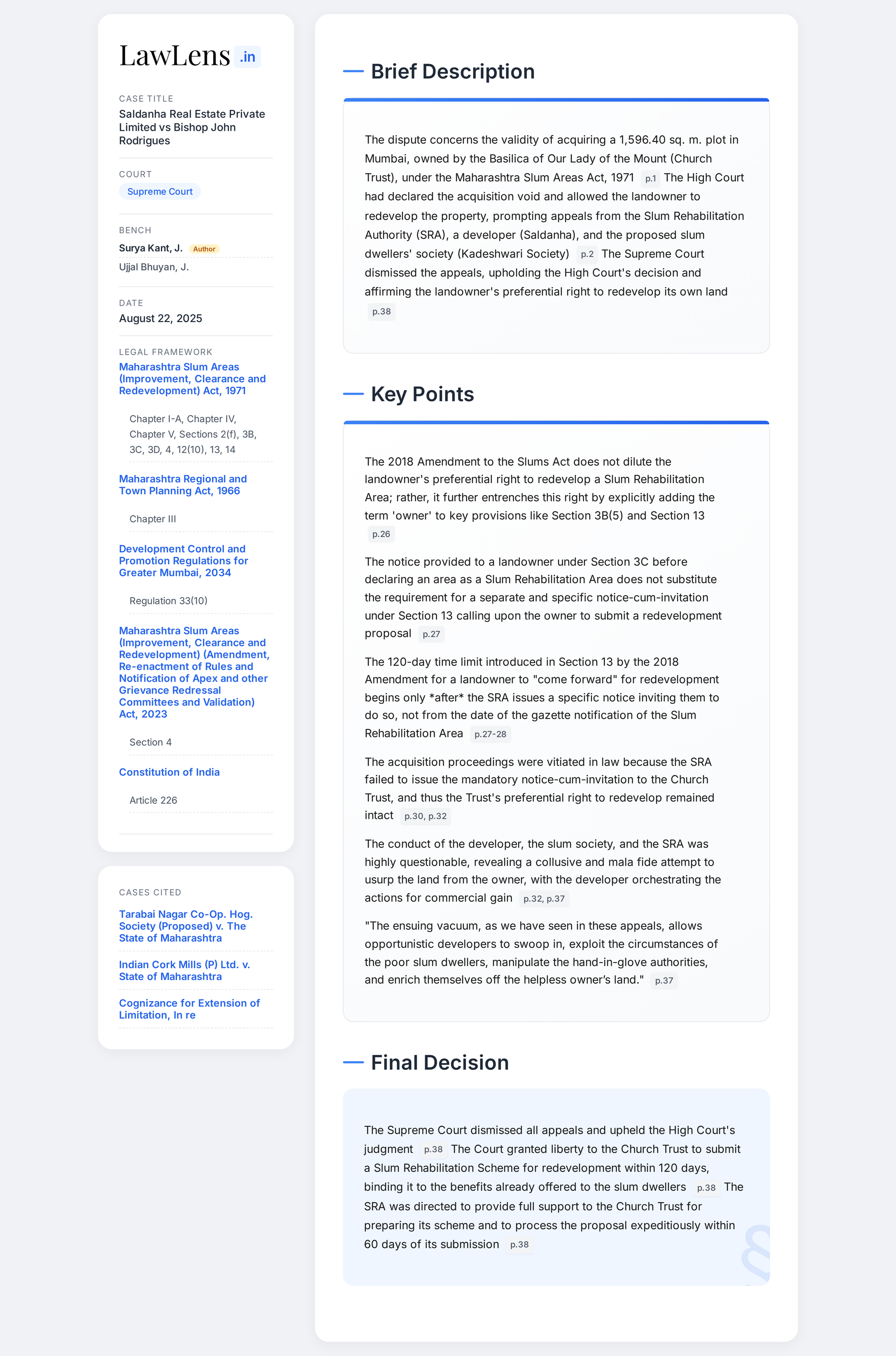 Saldanha Real Estate Private Limited vs Bishop John Rodrigues 2025 INSC 1016 -Maharashtra Slum Areas Act