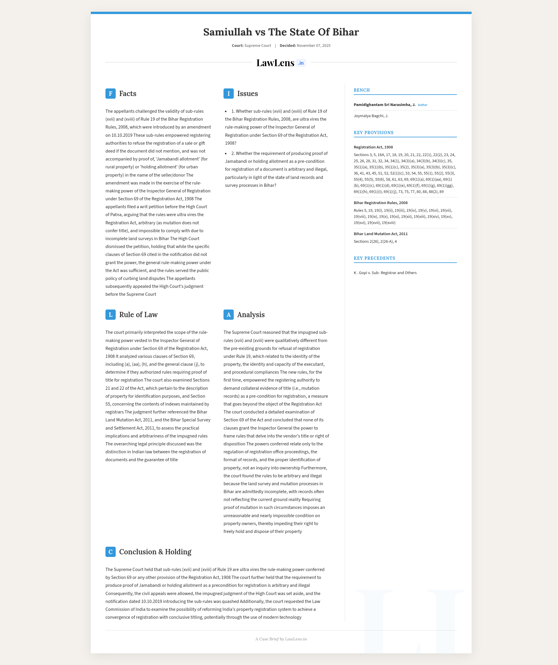 Samiullah vs State of Bihar; 2025 INSC 1292- Registration Act - Title