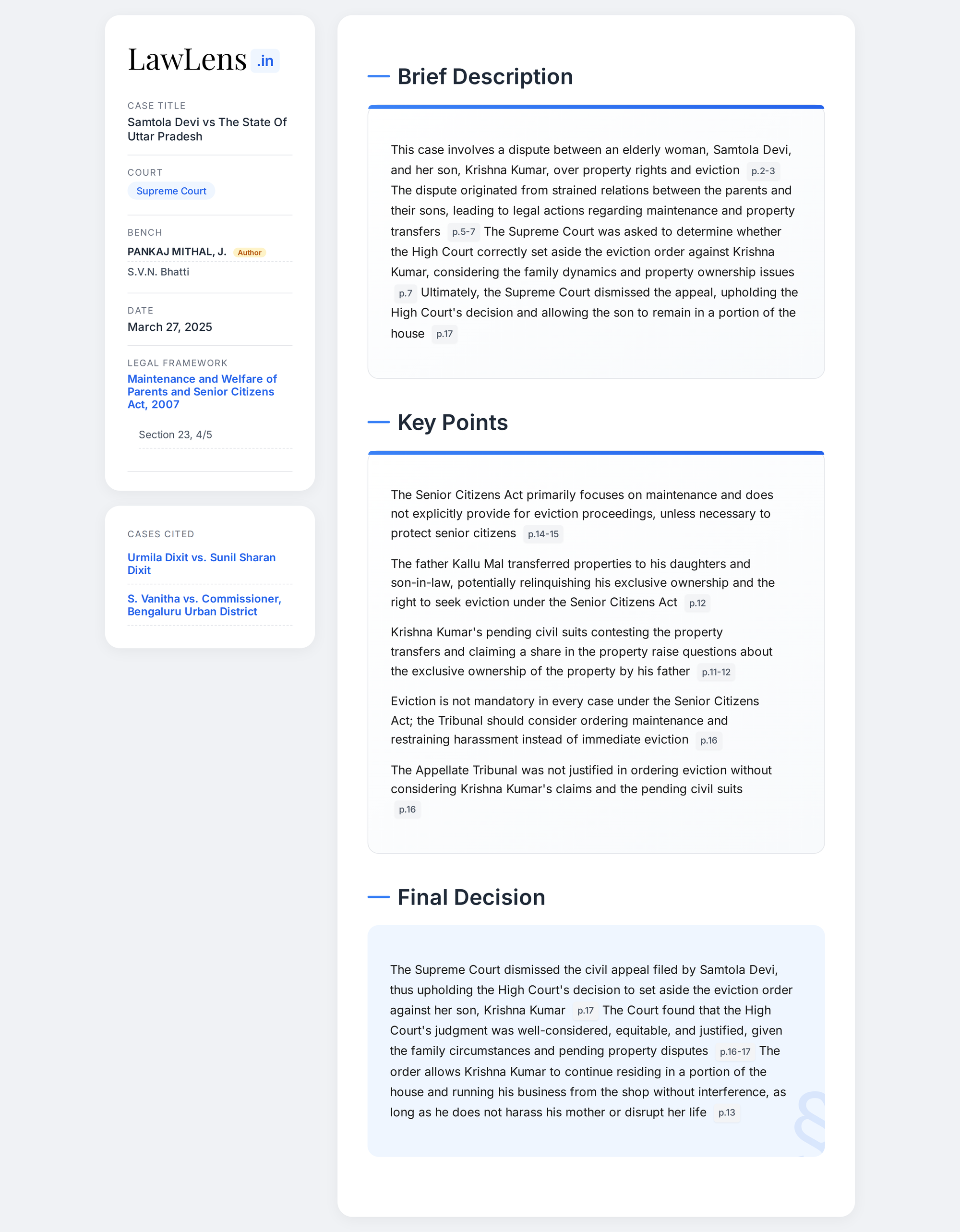 Samtola Devi vs State Of Uttar Pradesh 2025 INSC 404 - Senior Citizens Act - Eviction Orders