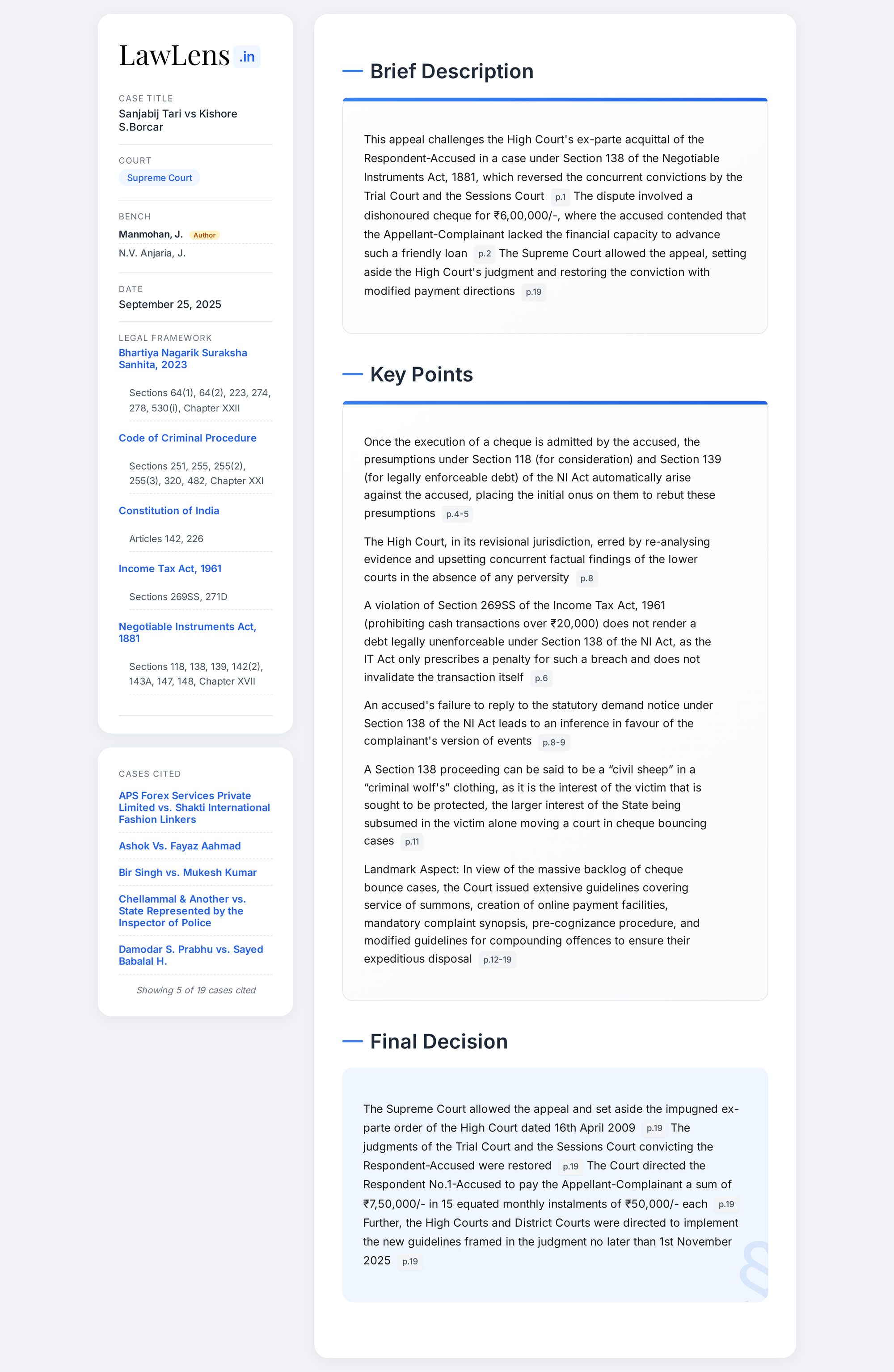 Sanjabij Tari v. Kishore S. Borcar 2025 INSC 1158 - Income Tax Act - S.138 NI Act