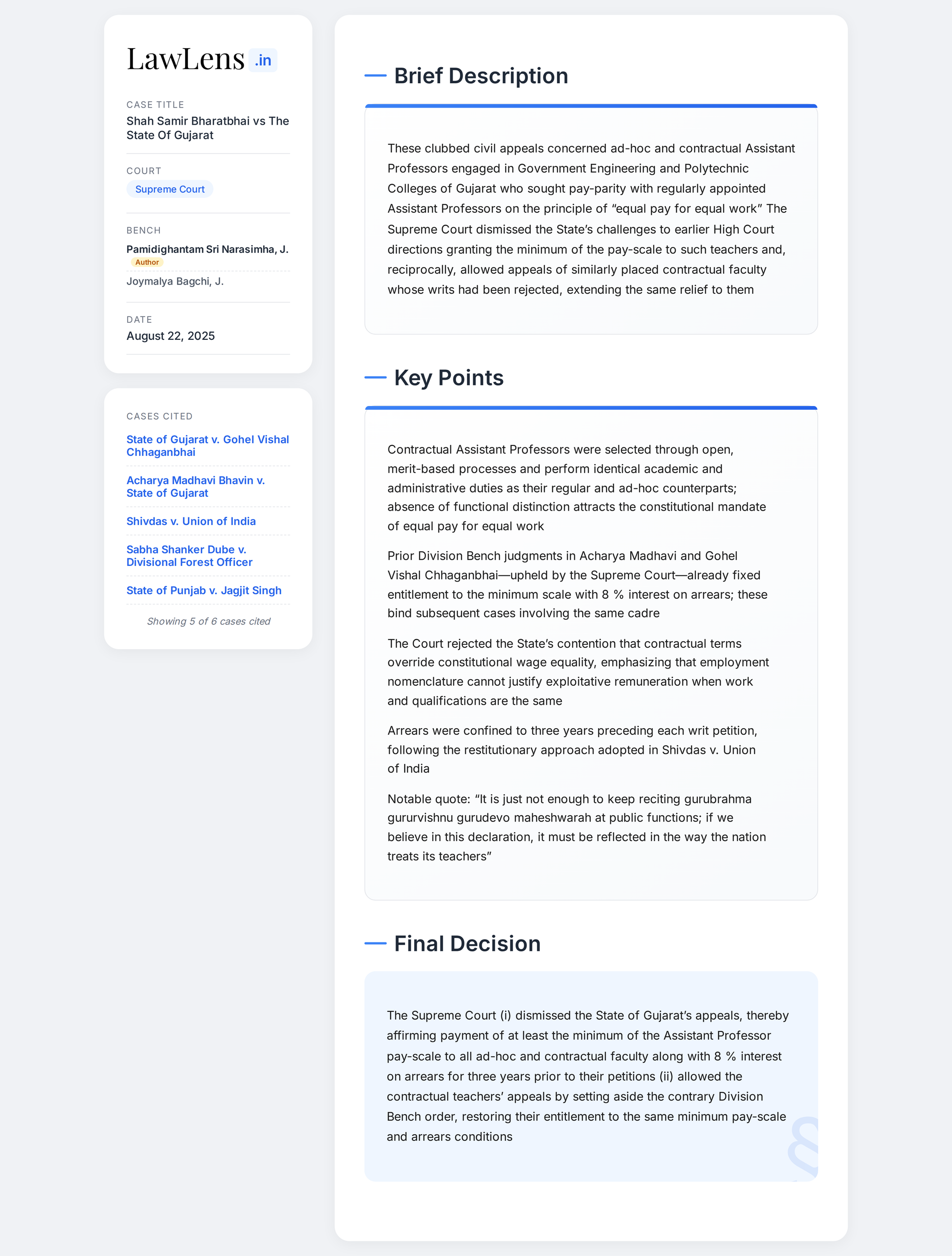 - Case Name: Shah Samir Bharatbhai & Ors. v. The State of Gujarat & Ors.