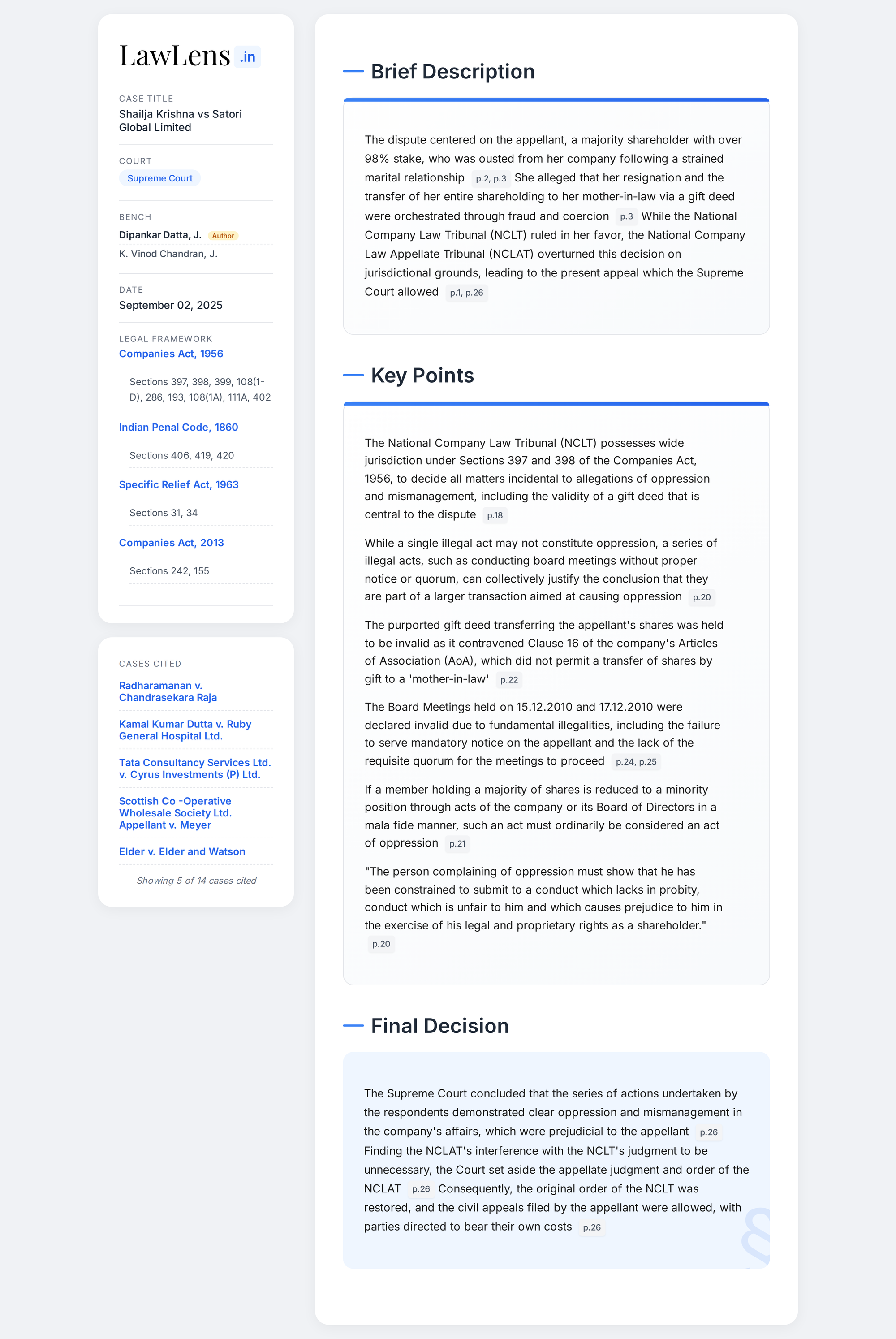 Shailja Krishna vs. Satori Global Limited 2025 INSC 1065 - Ss.397,398 - NCLT/CLB - Gift Deed Validity