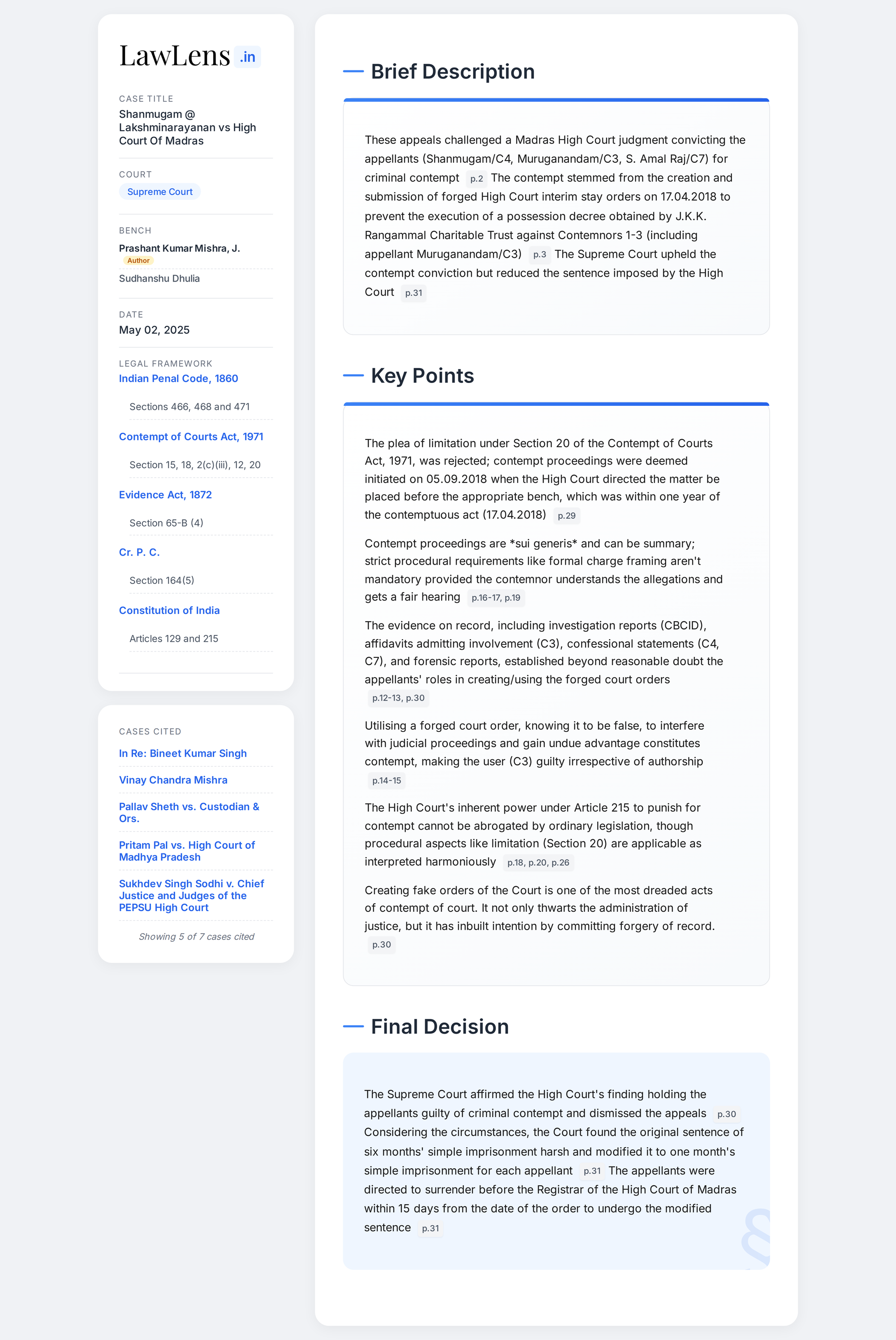 Shanmugam @ Lakshminarayanan vs High Court Of Madras 2025 INSC 619 - Contempt - Create Fake Court Orders - Limitation