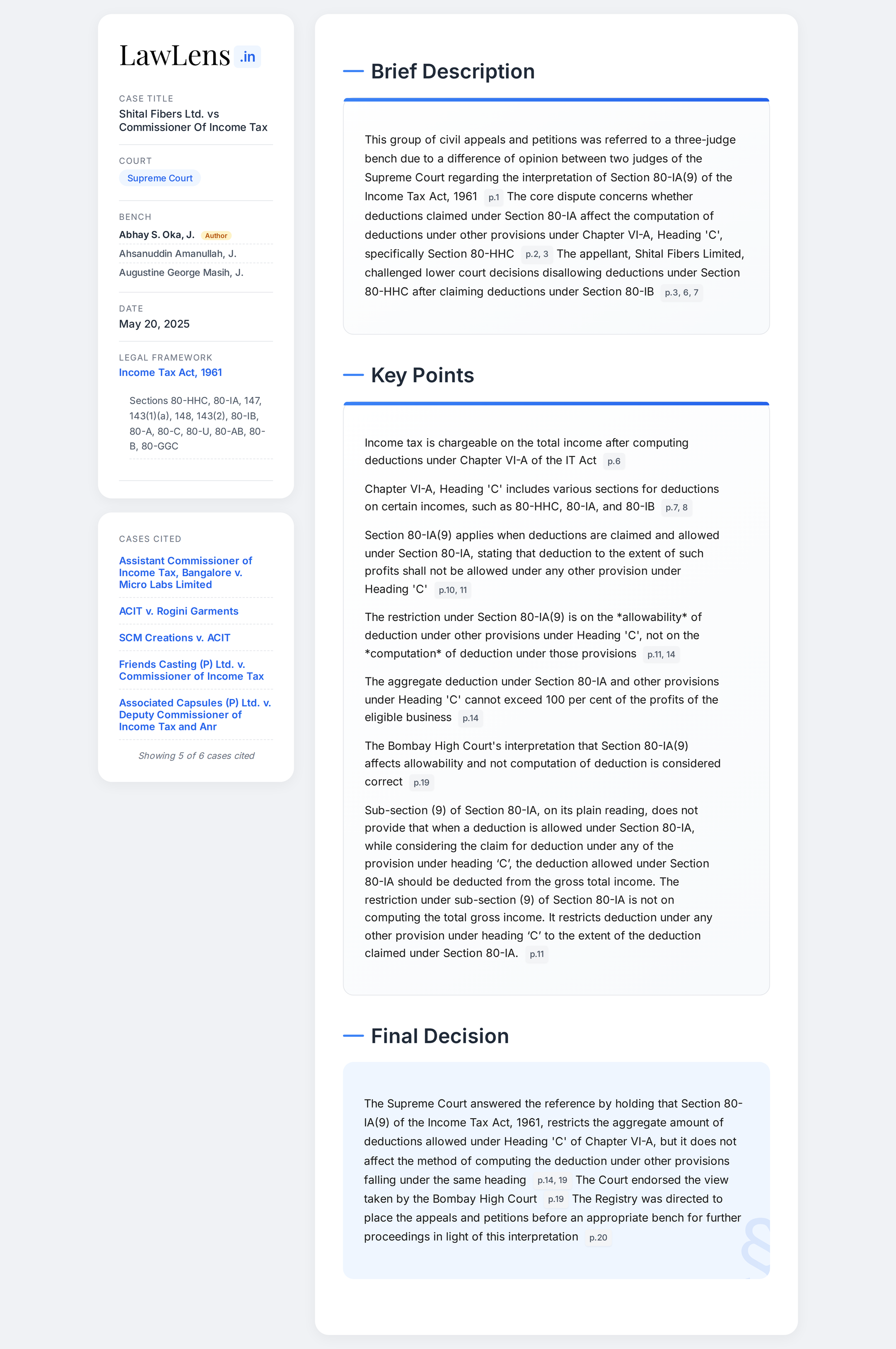 Shital Fibers Limited vs Commissioner of Income Tax 2025 INSC 743 - S. 80IA Income Tax Act