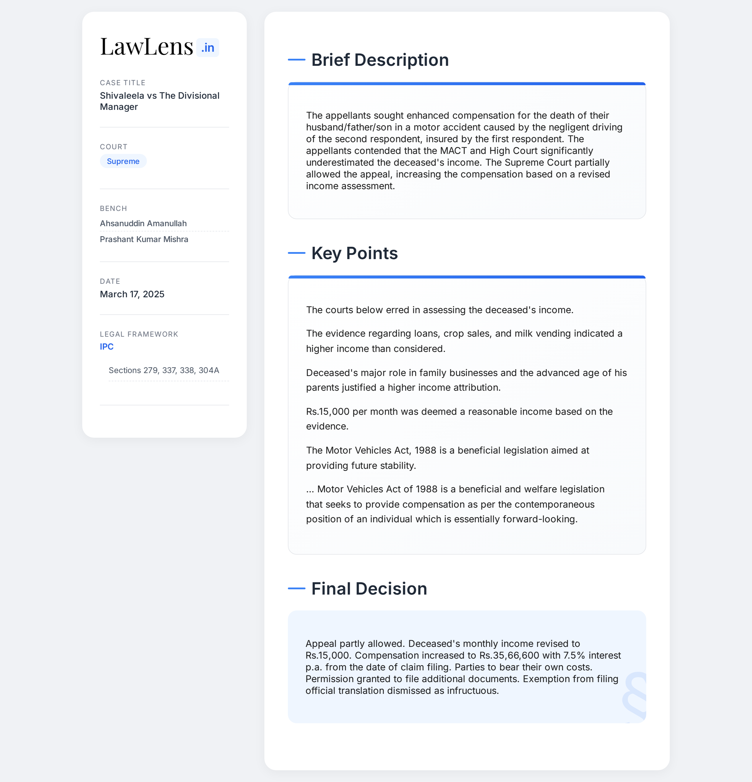 Shivaleela Vs Divisional Manager, United India Insurance 2025 INSC 357 - Motor Accident Compensation
