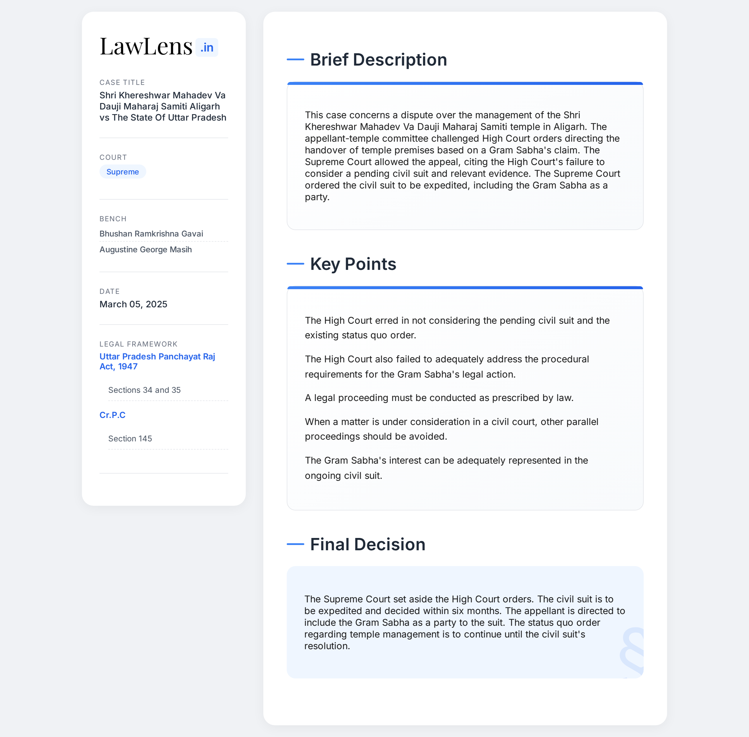 Shri Khereshwar Mahadev Va Dauji Maharaj Samiti, Aligarh vs State Of Uttar Pradesh - 2025 INSC 362