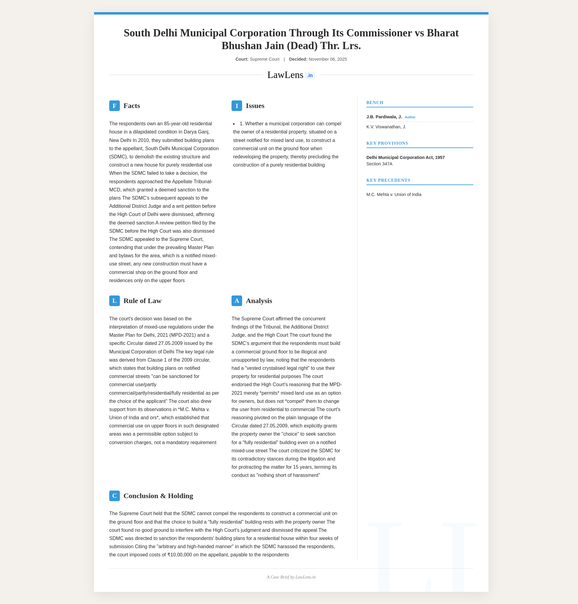 South Delhi Municipal Corporation v. Bharat Bhushan Jain; 2025 INSC 1324 - Building Reconstruction