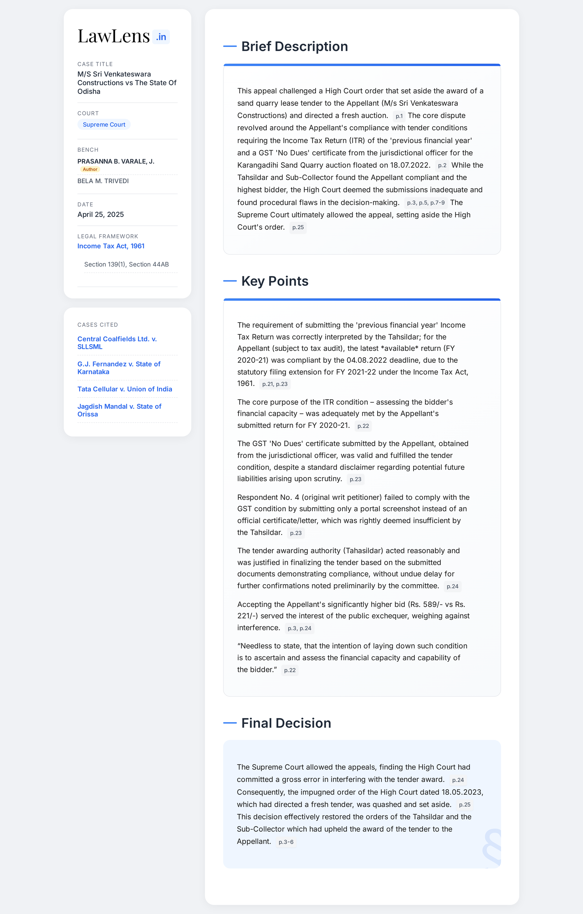 Sri Venkateswara Constructions vs State of Odisha 2025 INSC 580