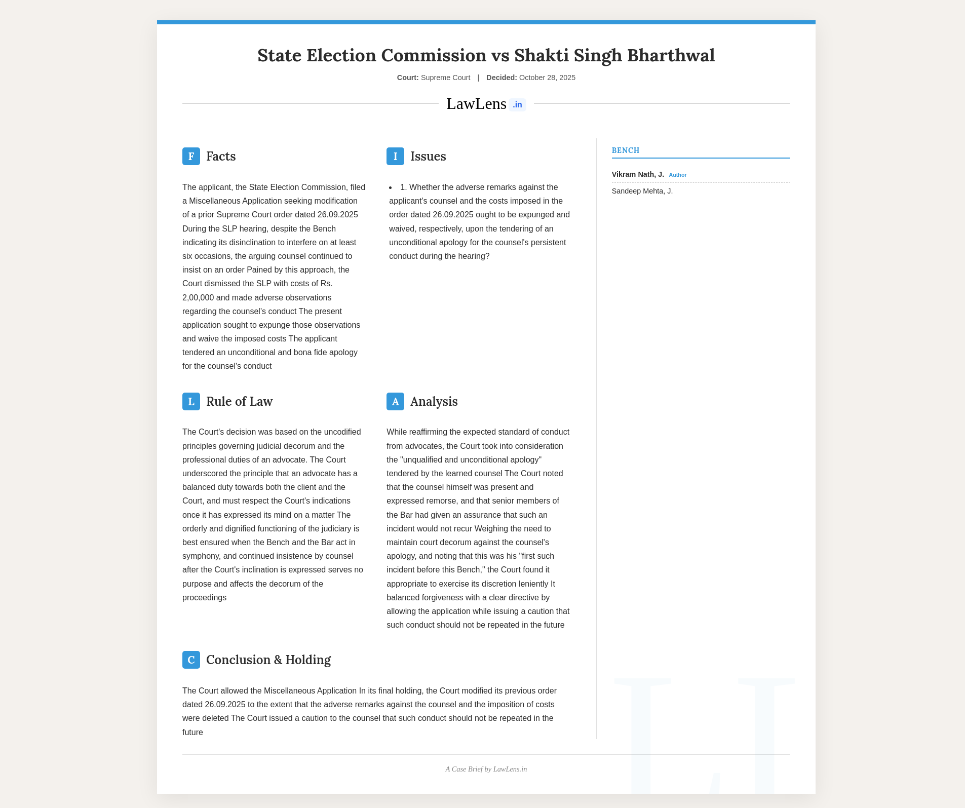 State Election Commission v. Shakti Singh Barthwal 2025 INSC 1261 - Practice - Court Decorum