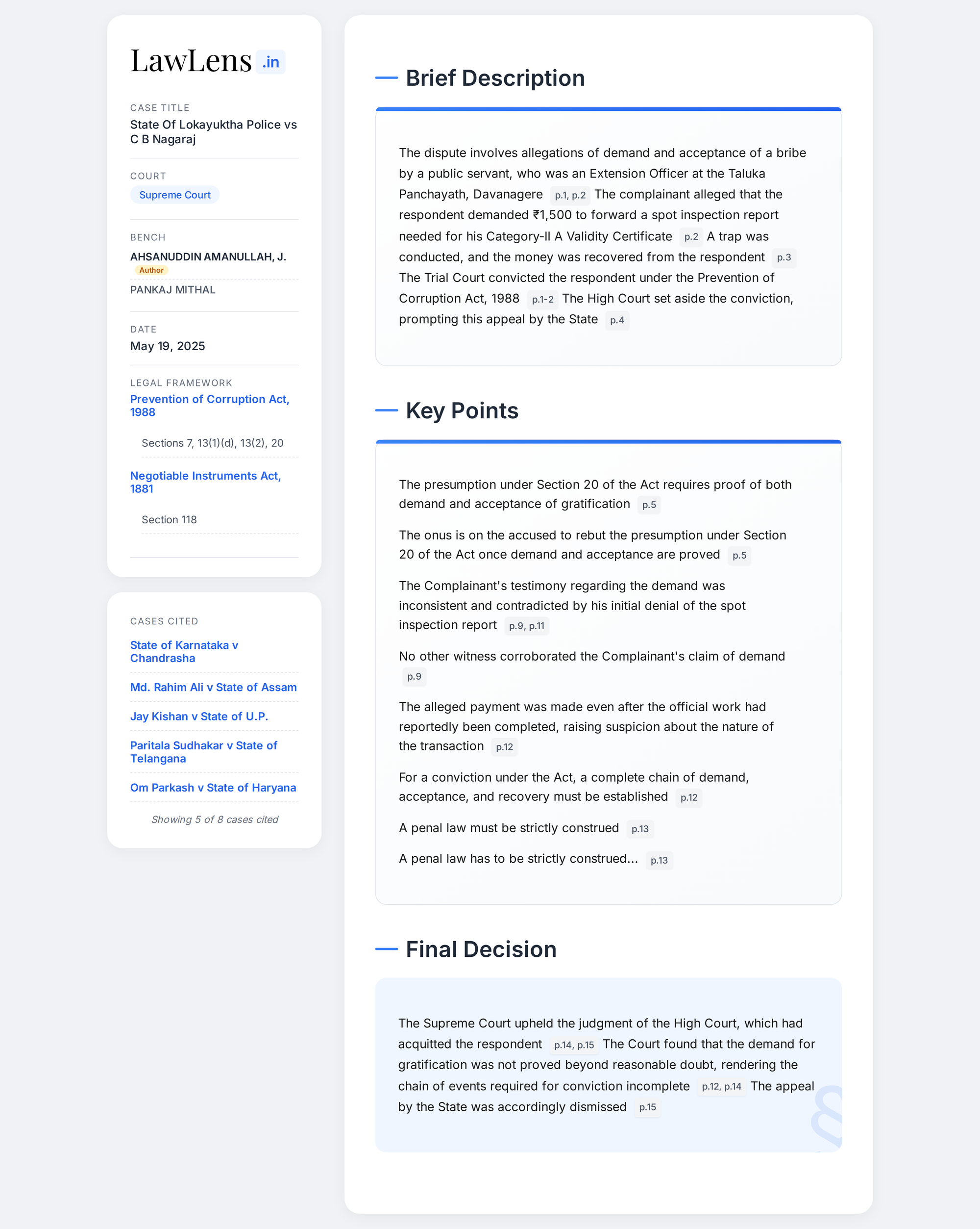 State Of Lokayuktha Police, Davanagere vs C B Nagaraj 2025 INSC 736 - Prevention of Corruption Act