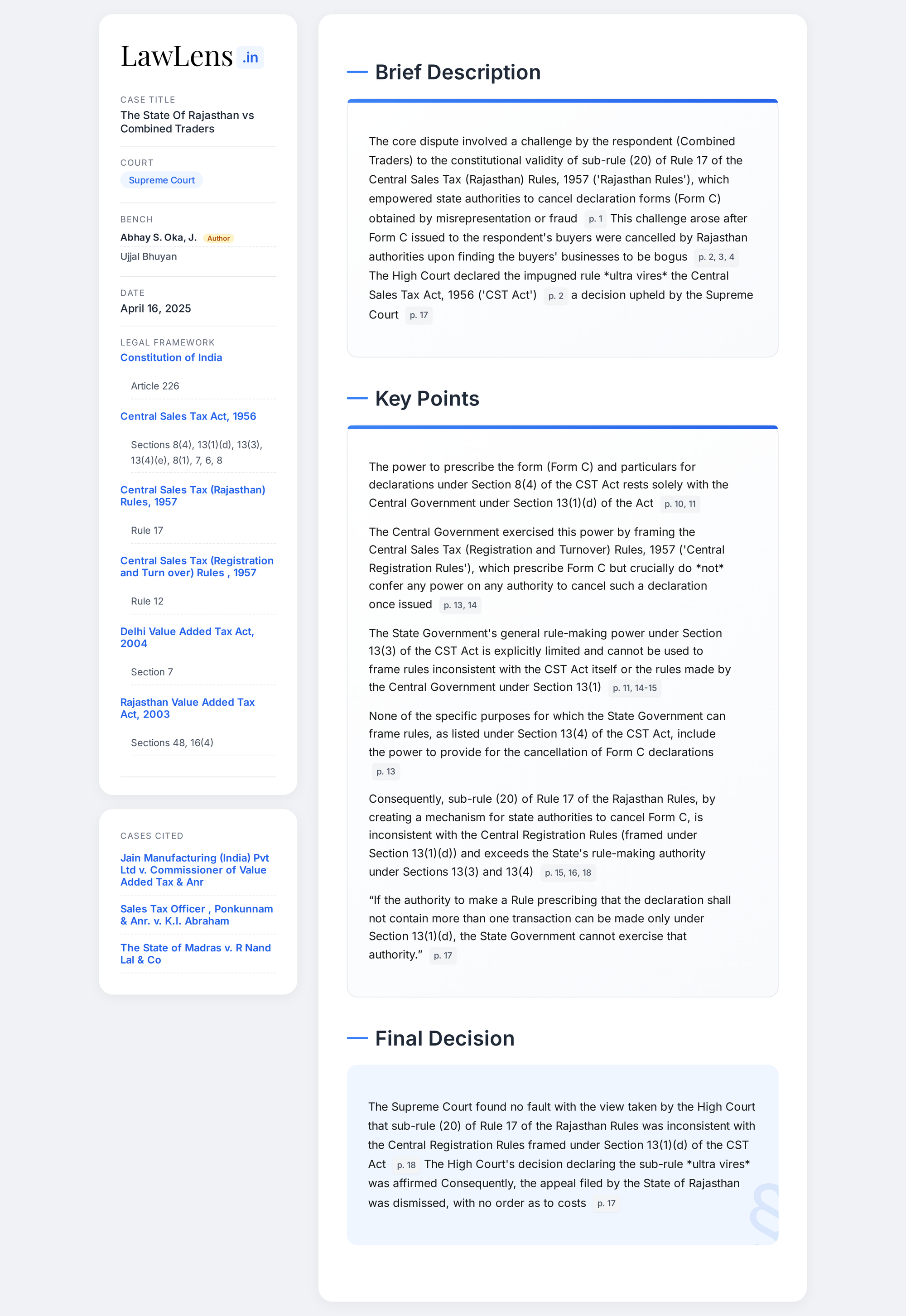 State Of Rajasthan vs Combined Traders 2025 INSC 496 - Taxation - Central Sales Tax Act