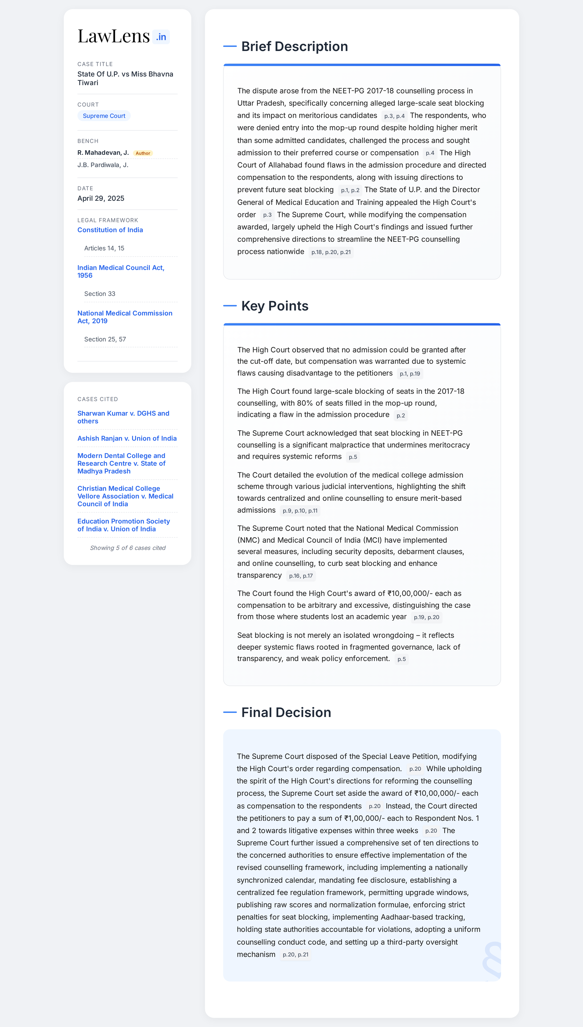 State Of U.P. vs Bhavna Tiwari 2025 INSC 747 - NEET - Seat Blocking