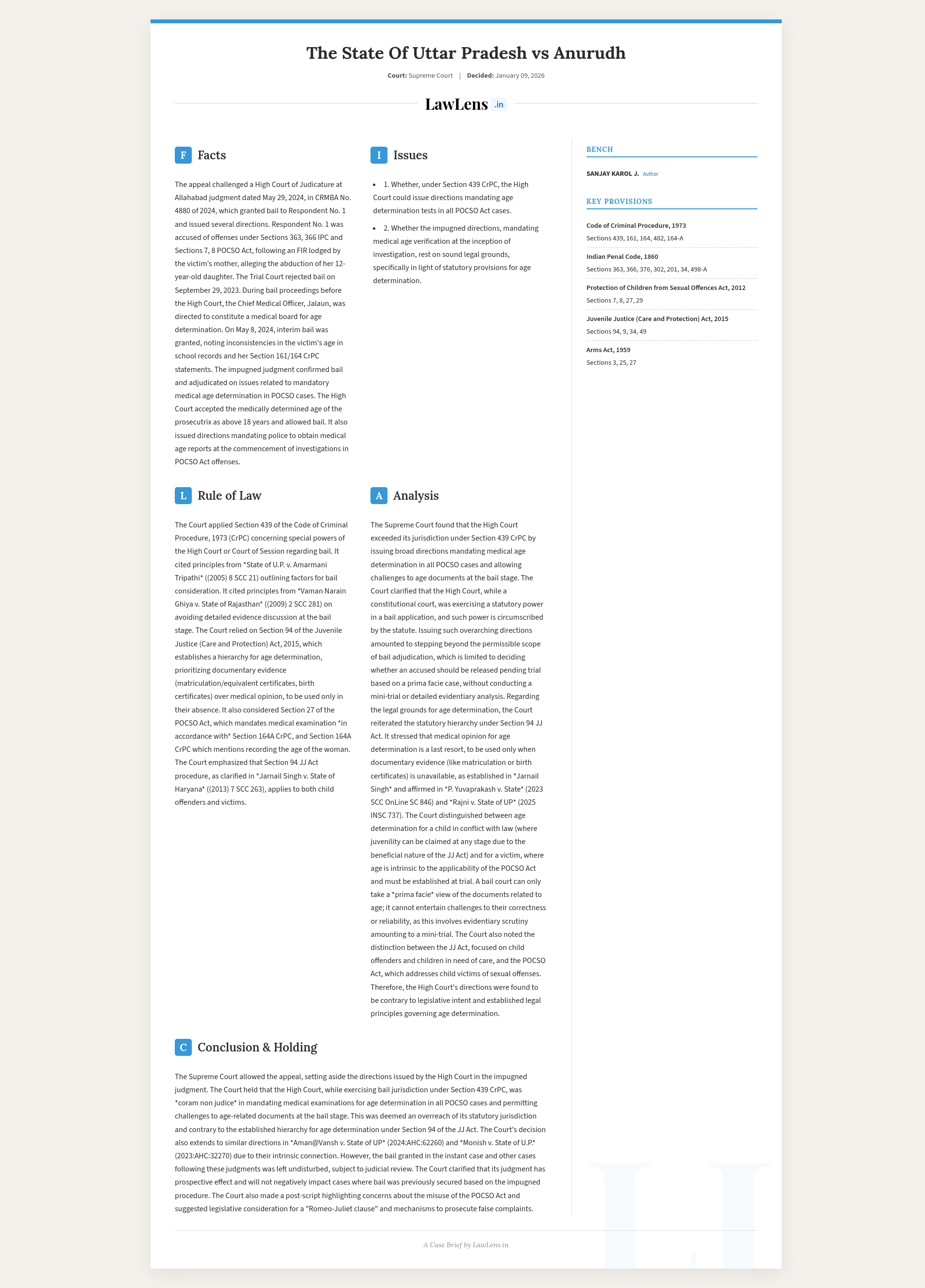 - Case name: State of Uttar Pradesh v. Anurudh & Anr.