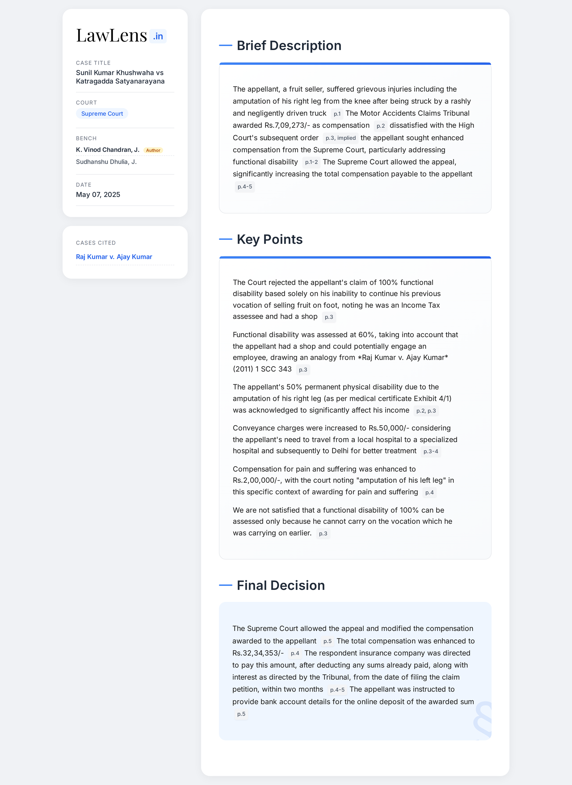 Sunil Kumar Khushwaha vs Katragadda Satyanarayana 2025 INSC 642 - Motor Accident Compensation -Functional Disability