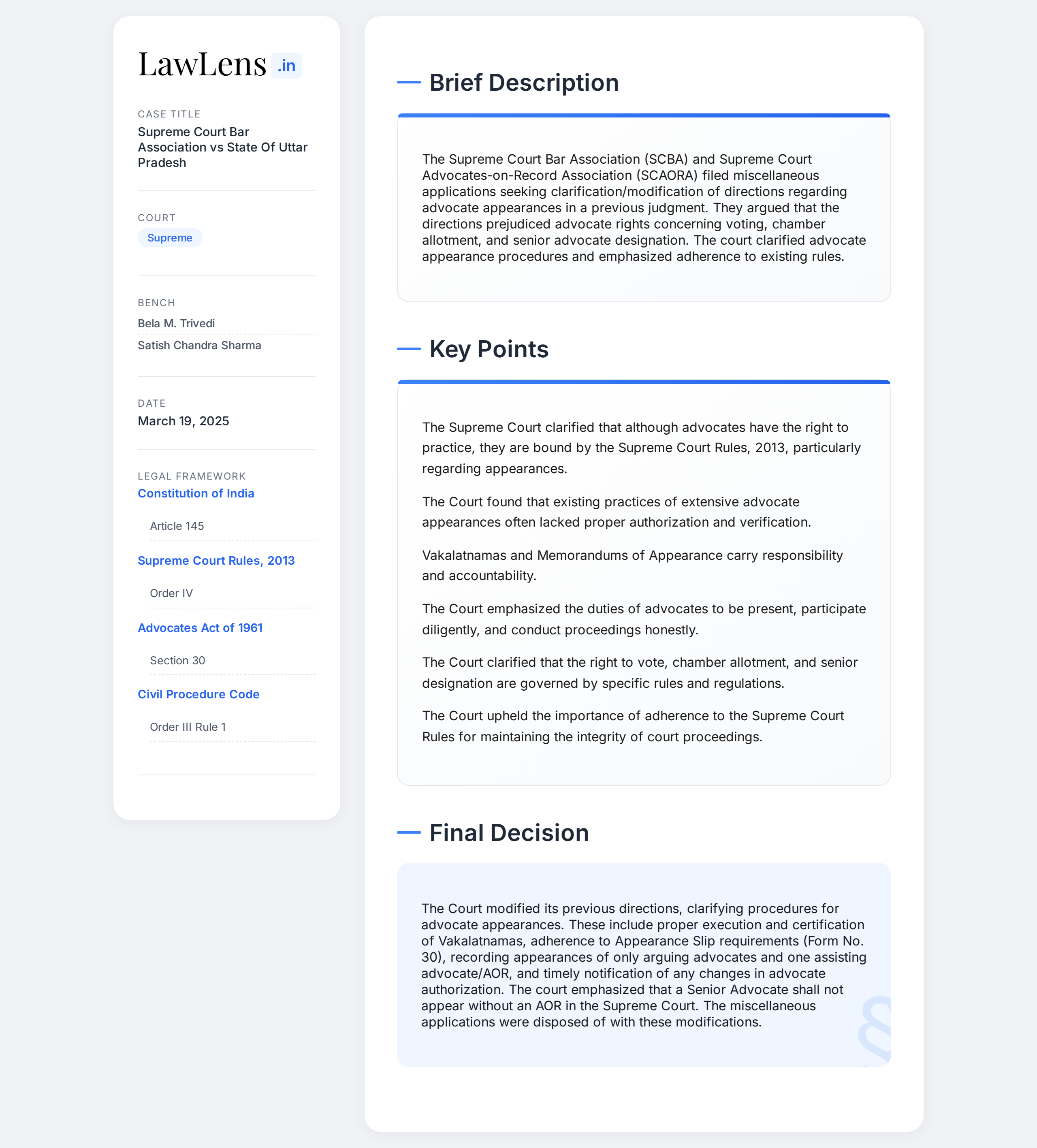Supreme Court Bar Association vs State Of Uttar Pradesh 2025 INSC 364 - AOR Practice - Guidelines