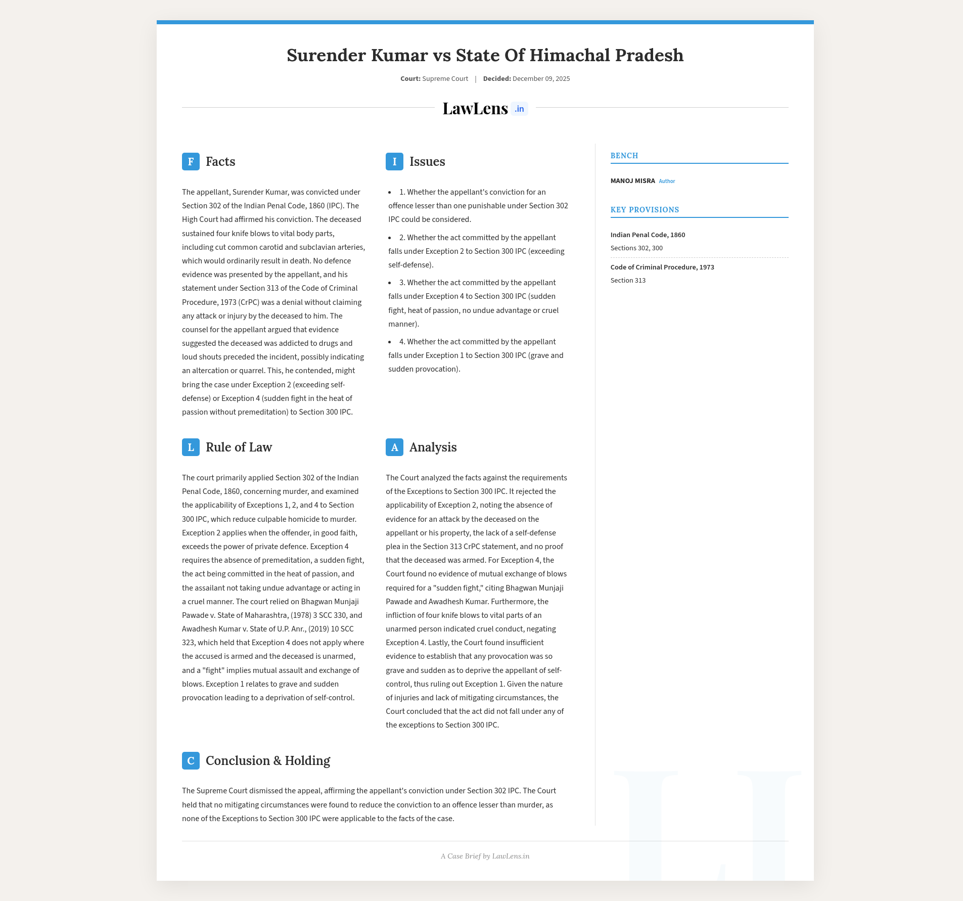 - Case name: Surender Kumar v. State of Himachal Pradesh