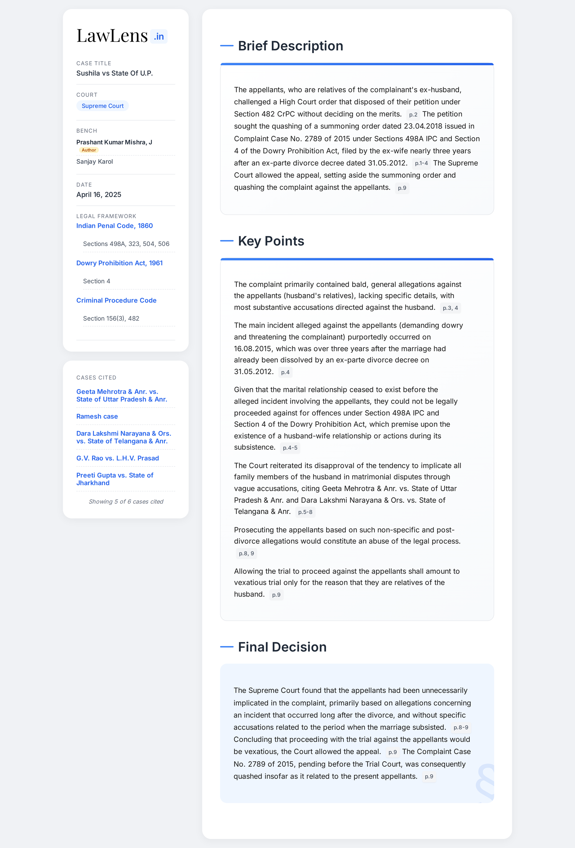 Sushila vs State Of UP 2025 INSC 505 - S. 498A IPC - Implicating Husband's Relatives