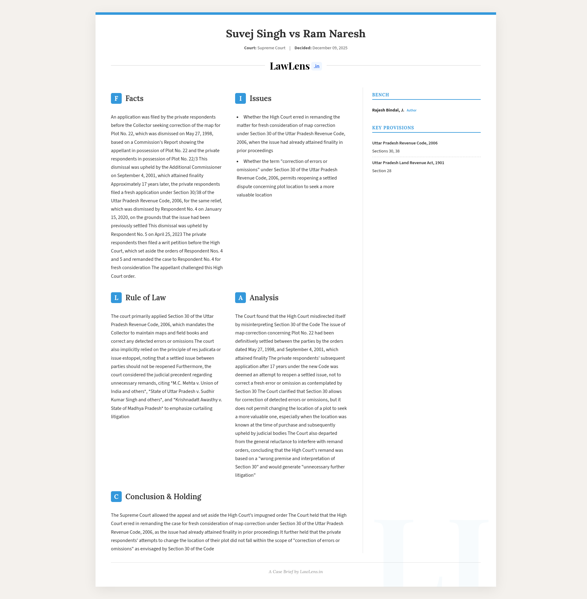- Case Name: Suvej Singh v. Ram Naresh and Ors.