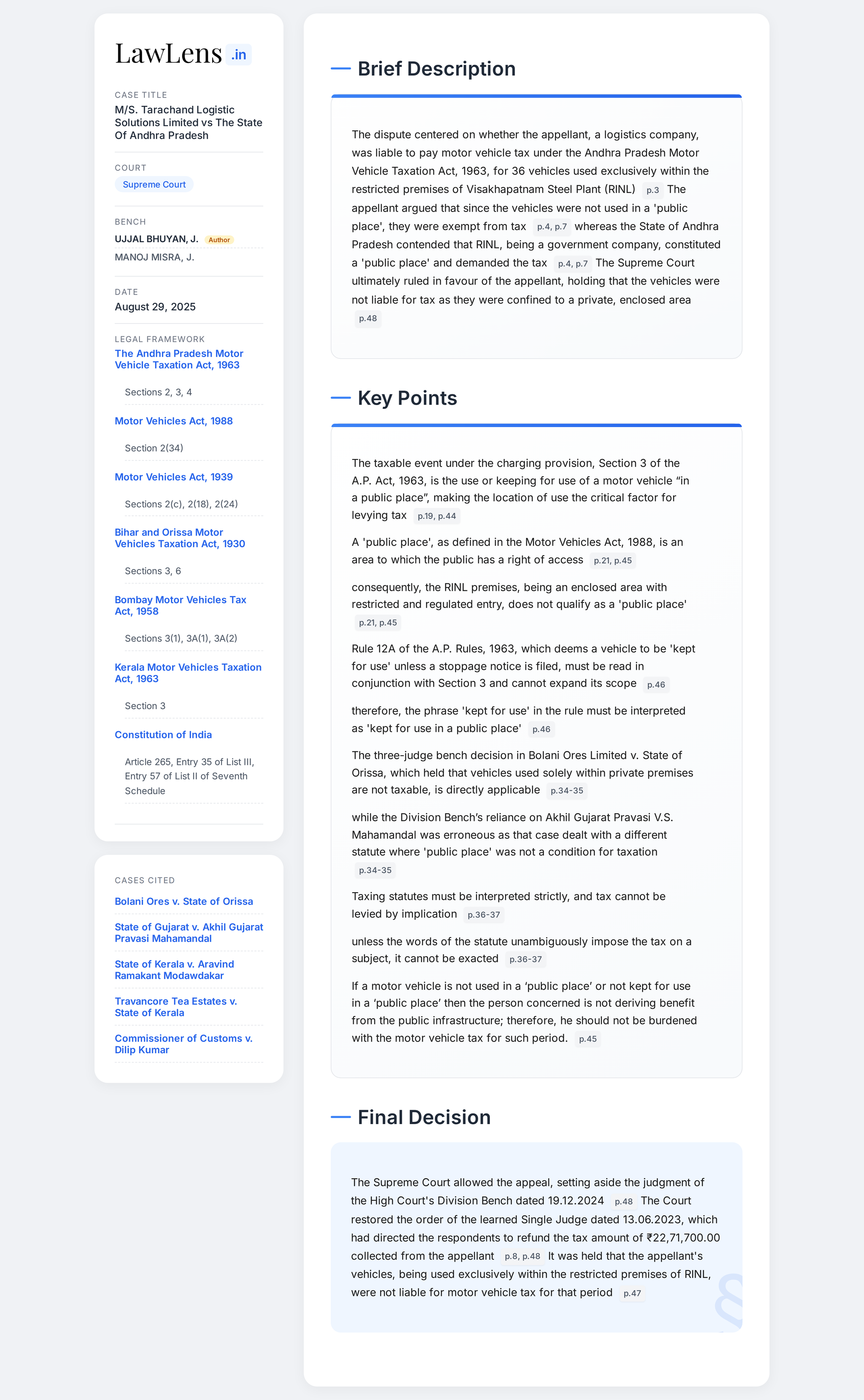 Tarachand Logistic Solutions Limited v. State of Andhra Pradesh 2025 INSC 1052 - Motor Vehicles Act - Tax