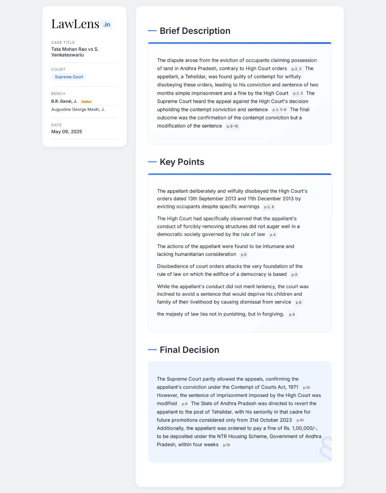 Tata Mohan Rao vs S. Venkateswarlu 2025 INSC 678 - Contempt of Court