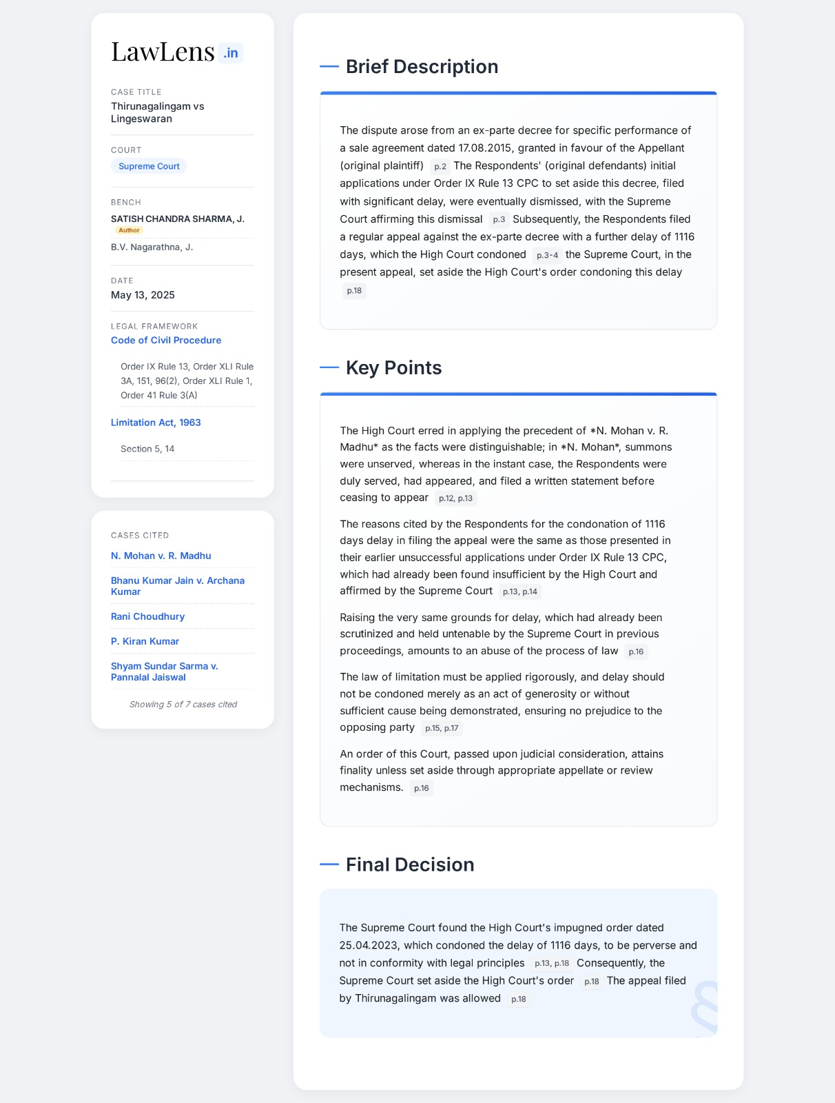 Thirunagalingam vs Lingeswaran 2025 INSC 672 - Limitation Act - Condonation of Delay