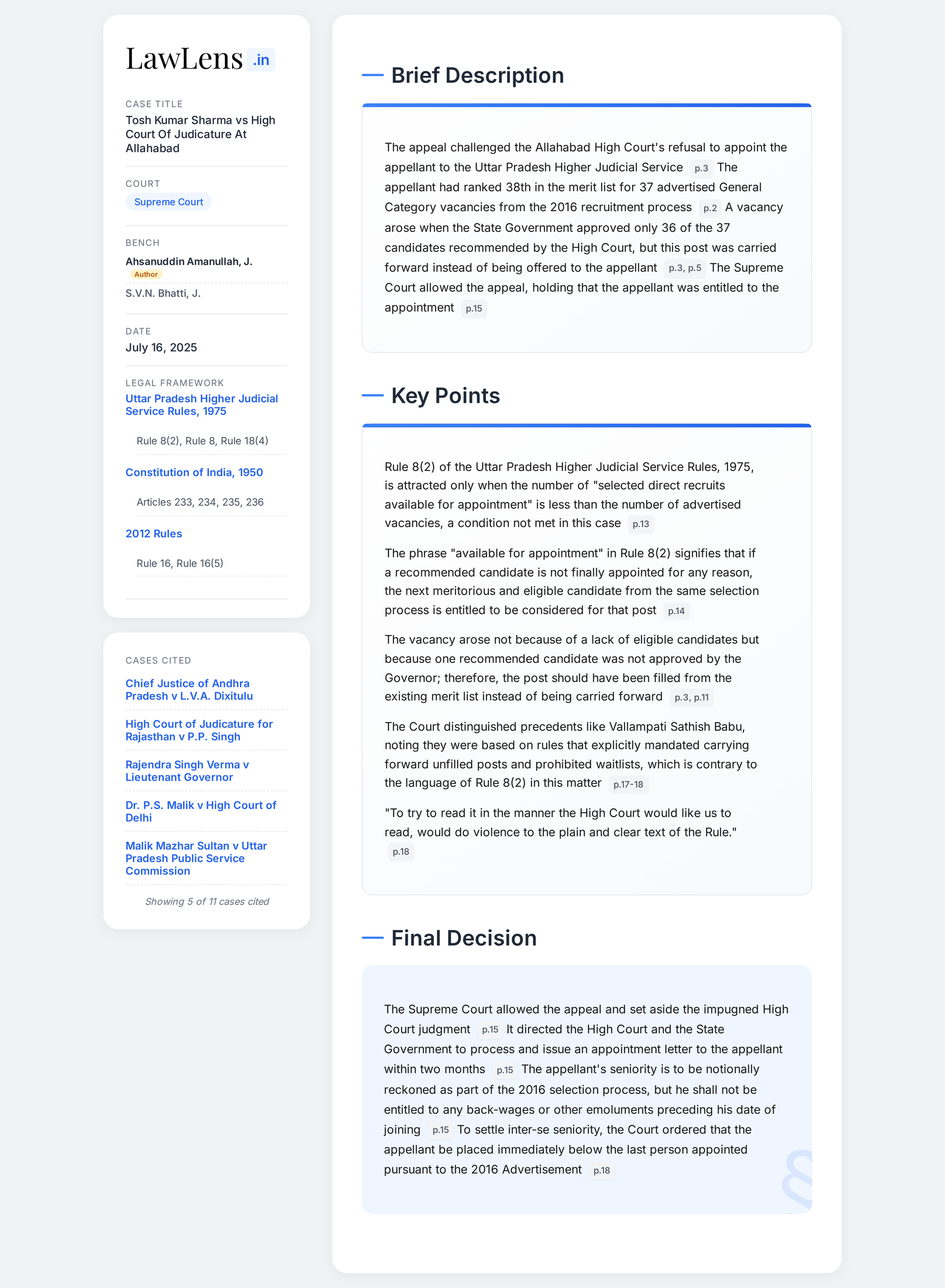 - Case Name: Tosh Kumar Sharma v. High Court of Judicature at Allahabad & Ors.